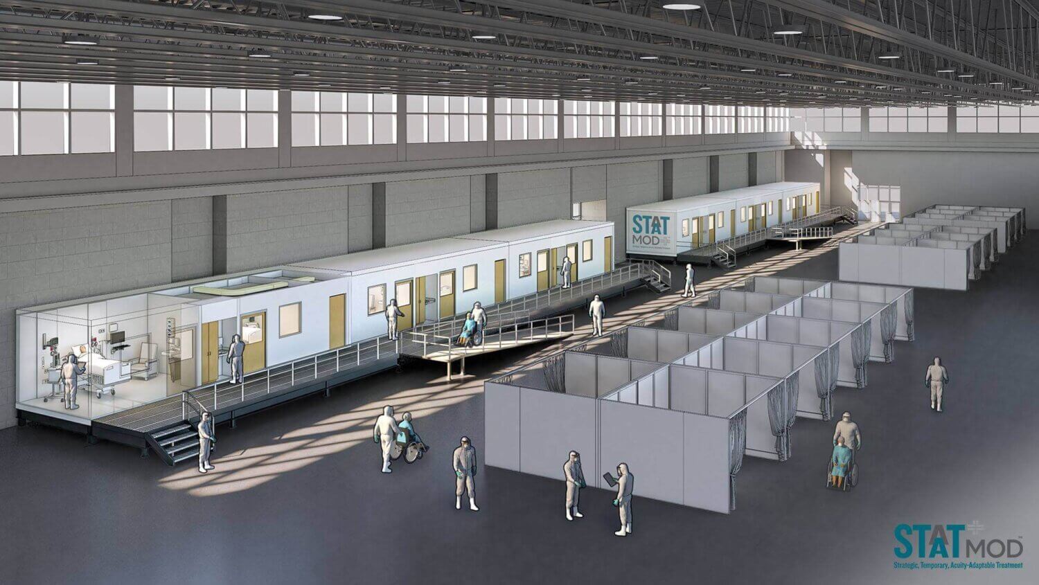 The Boldt Company, a contractor in Appleton, Wisconsin, is prefabricating modular structures, designed by the firm HGA, that meet the need for speed without the sanitation and ventilation problems of tents. STAAT MOD, as the units are called, can be delivered on a standard truck trailer. They contain two finished patient rooms and a bathroom, along with medical and HVAC infrastructure that meet the negative-pressure standards for AII rooms.