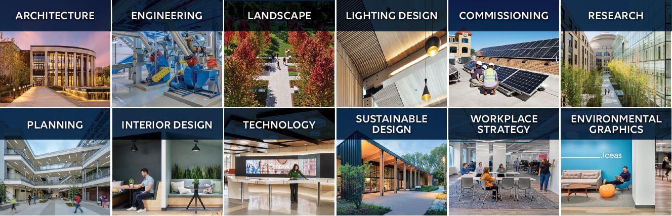 We believe that the best design results from deep insight into the people and passions that animate each unique environment. Over 1,100 people in 12 offices from coast to coast work to make a positive, lasting impact for clients in education, community, healthcare, arts and culture, corporate, government, and energy markets. Explore our offerings: