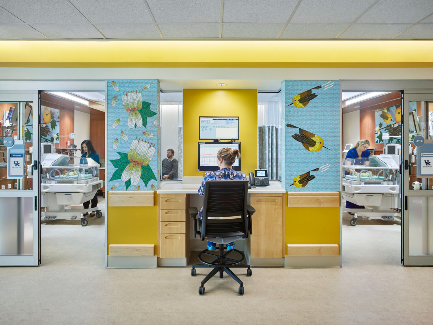 At HGA, our researchers can be found following the workflow of nurses in academic medical centers, community hospitals, outpatient centers, clinics – we’re able to observe nurses while doing shadowing during their shifts, seeing them care for their patients—and design a more efficient unit for them so they can be more effective and spend more time with their patients. In acute care settings, we seek to understand how to design nursing workflow to increase not just their efficiency and decrease the steps they must walk every day, but to also provide physical areas for respite and support to allow them to be “off-stage”. Nurses need healing too, spaces for reflection, and time to catch their breath. Today there is even more emphasis from hospital leaders to ensure adequate amenity space for staff. Those health systems who are pushing the envelope to increase retention are even providing amenities like day care, access to wellness and exercise spaces, and seeking new opportunities to allow staff to go home less drained.