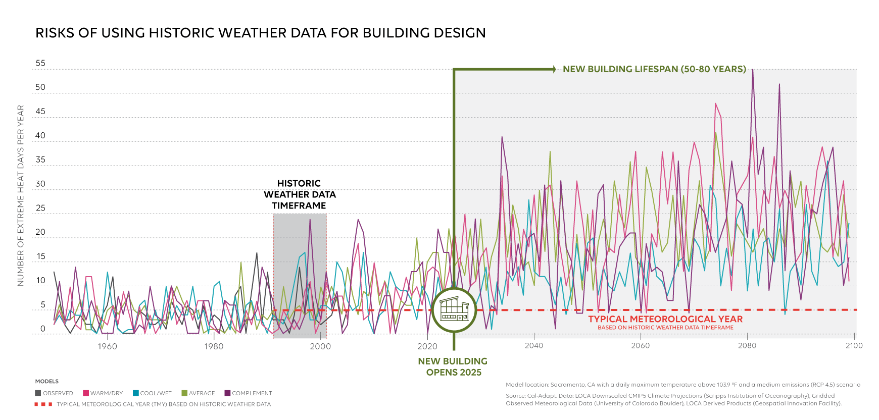Architecture and Engineering (A&E) professionals are well-positioned to advance climate adaptation innovations and high-value services through the effective use of climate information and data. Sources of this information are becoming more widely available, yet they are often not well-suited for immediate A&E applications. This article by Ariane Laxo, HGA Sustainability Director and project co-lead, outlines some of the barriers A&E professionals encounter when trying to apply climate projections to building design.