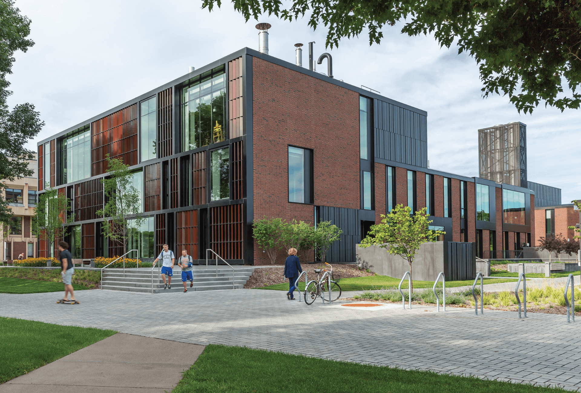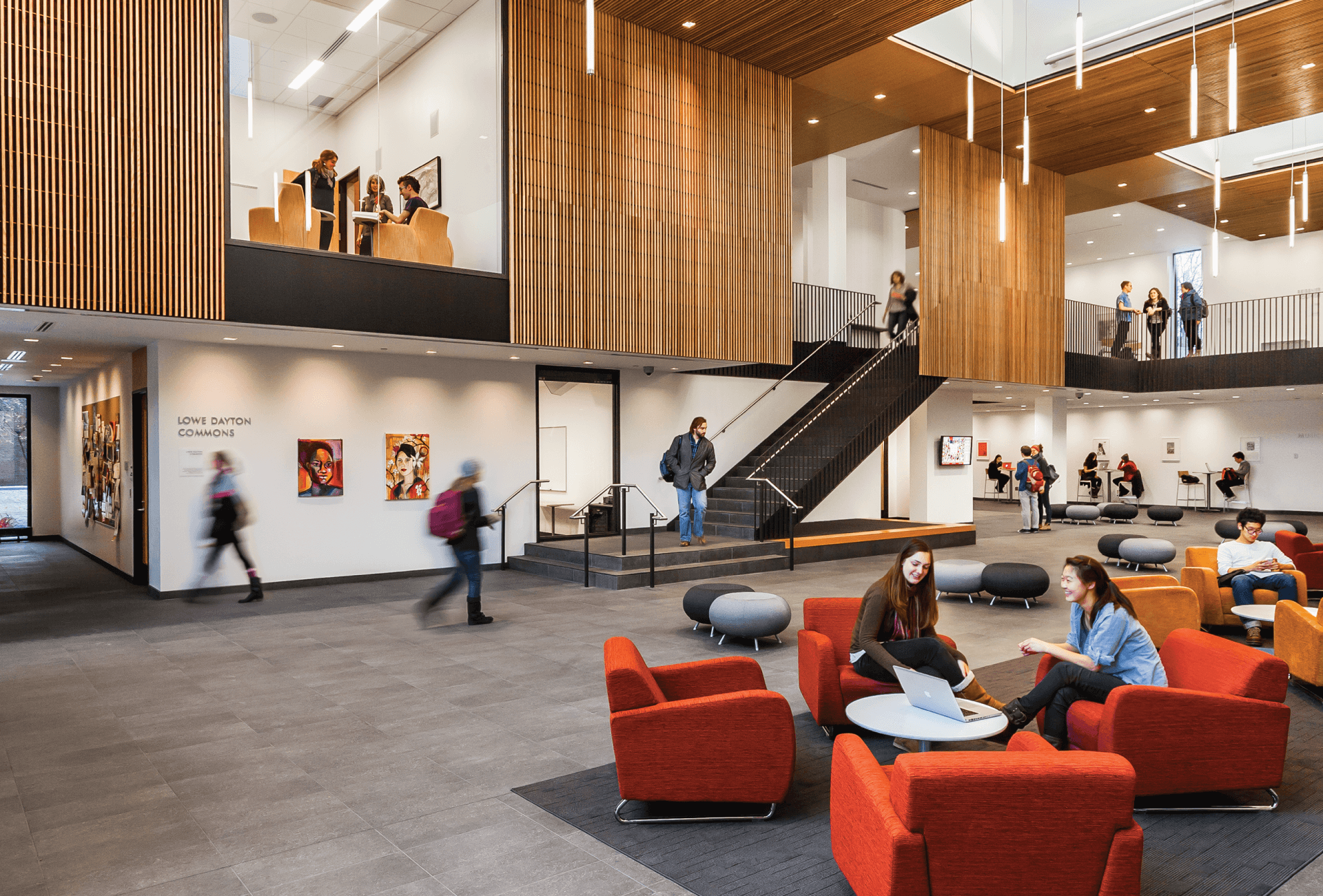 Rebecca: Many are investing heavily in state-of-the-art academic spaces and interdisciplinary research facilities, social spaces, and athletic facilities. Colleges are also investing in residential life spaces that emphasize qualities that make a campus special. For example, I am working with Macalester College in St. Paul on a new residence hall and welcome center that highlights the importance of integrating the residential experience on an urban campus. It serves as a new front door for the campus, welcoming the surrounding community. And it reinvents the traditional residence hall through shared amenities like kitchens and community spaces to foster student connections and community—concepts that are important for attracting students.