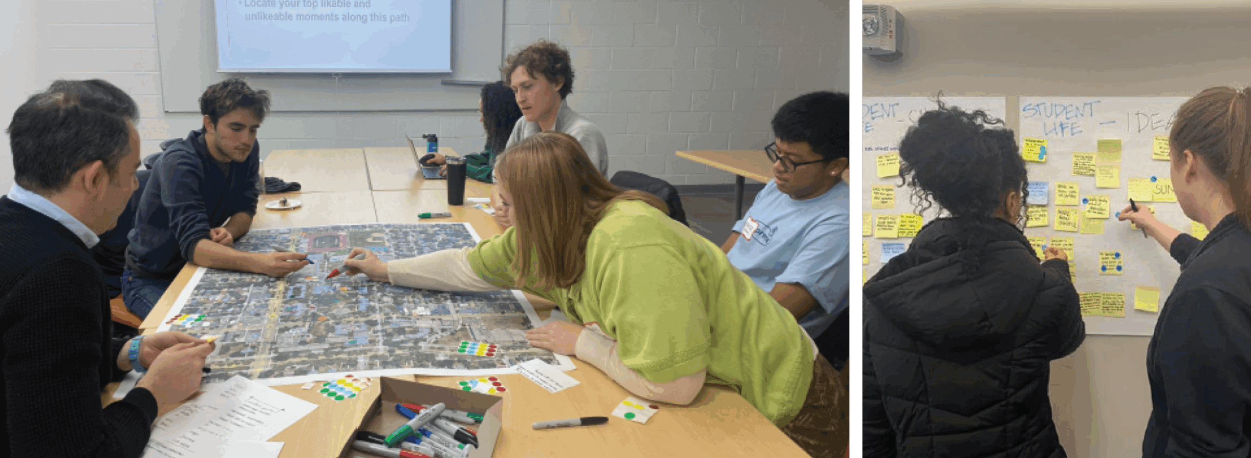 Our campus planning team has collaborated with several colleges on updating their comprehensive facilities plans, engaging students, faculty, staff, community members, and alumni to identify shared priorities across campus. Here, students from Macalester College (left) work with HGA on the development of the Comprehensive Campus Plan, while students at Carleton College (right) share feedback on draft priorities of the Campus Facilities Plan.