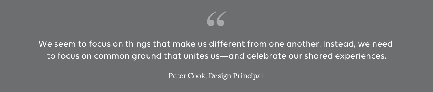And yet all these years later, we’re still wrestling with those very same issues, compounded by many more issues. We seem to focus on things that make us different from one another. Instead, we need to focus on common ground that unites us—and celebrate our shared experiences.