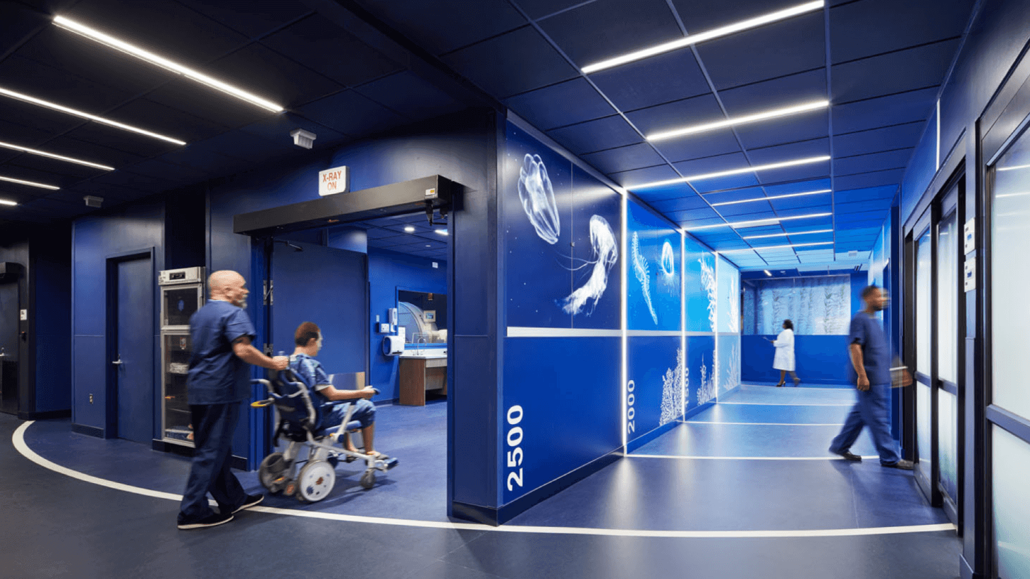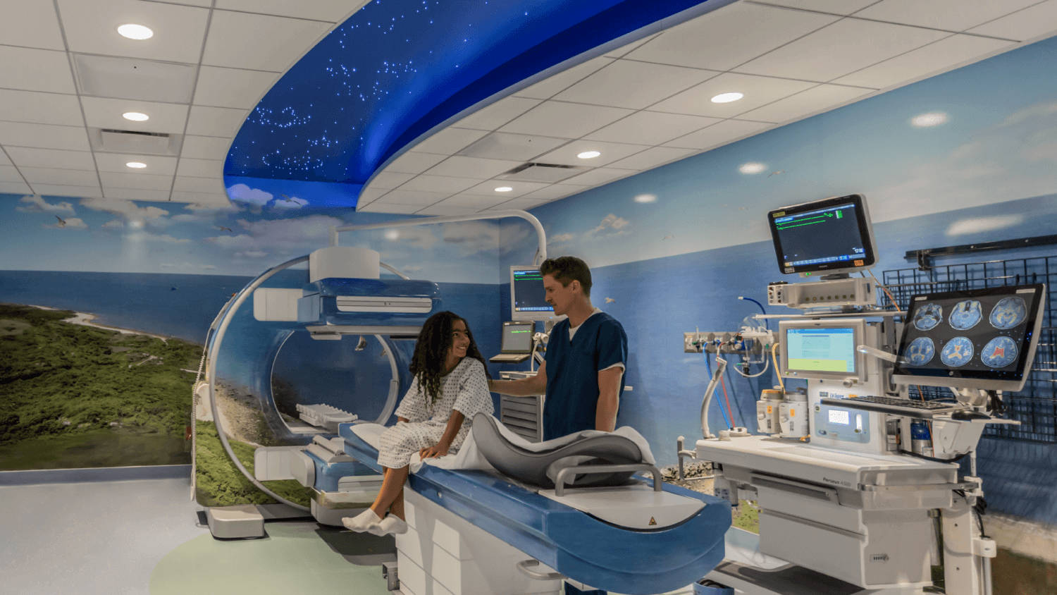 Imagery inspired by nature provides a sense of calm, while LED lighting mimicking night constellations provides opportunity for discovery during procedures at Lucile Packard Children’s Hospital Stanford.