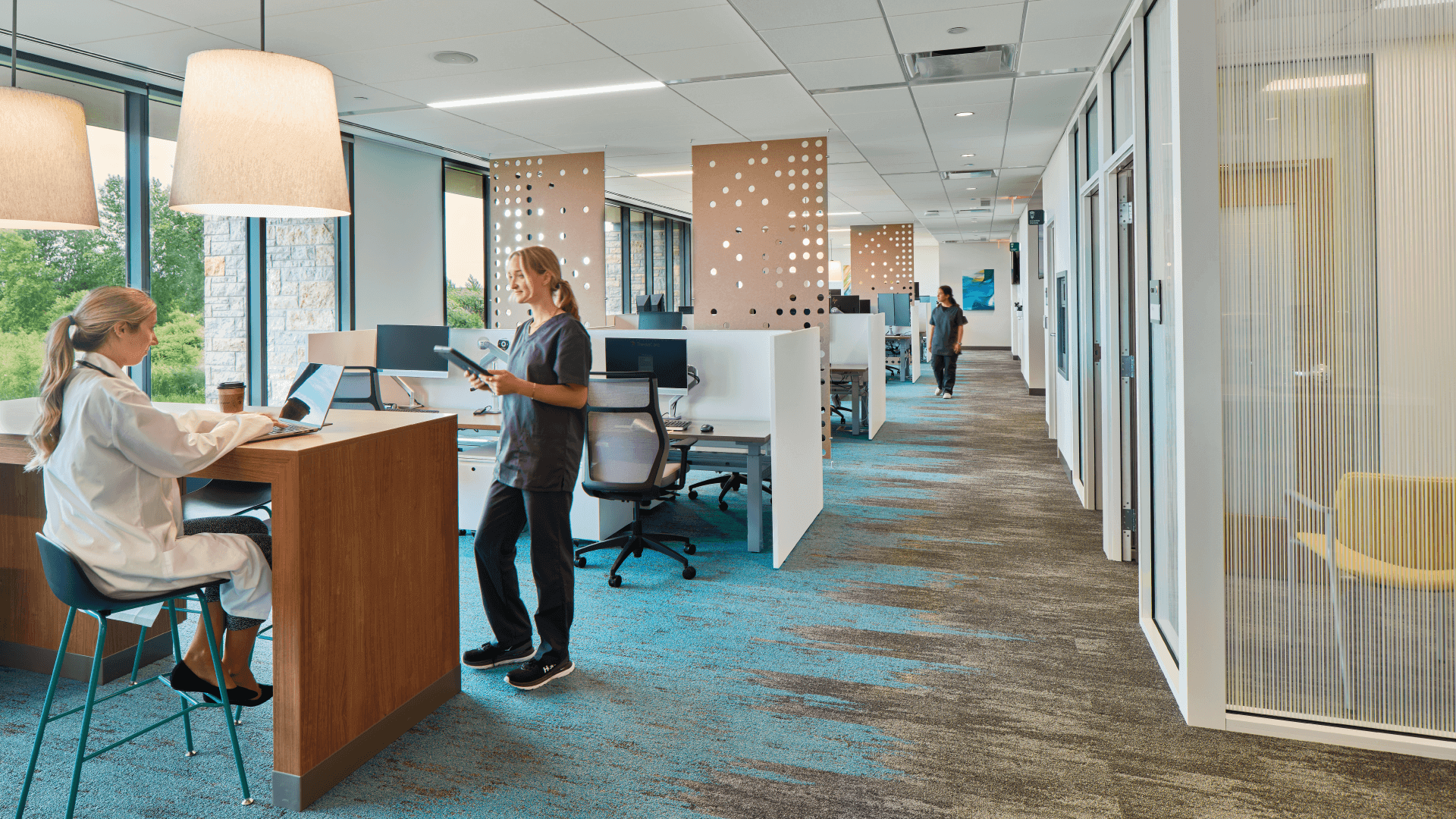 ThedaCare’s Orthopedic, Spine and Pain Center focuses on a flexible process neutral platform that accommodates a range of surgical procedures. Additionally, operationally efficient staff work zones support collaboration between caregivers, drawing on earlier post-occupancy research from ThedaCare’s Regional Cancer Center.