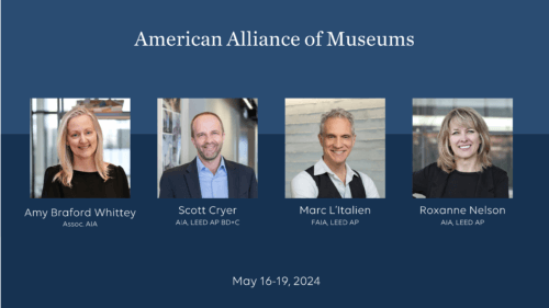 HGA’s Amy Braford Whittey, Scott Cryer, Marc L’Italien, and Roxanne Nelson will attend this year’s American Alliance of Museums (AAM) Annual Meeting. We look forward to learning alongside our museum partners, and sharing insights into how architecture and design can help advance the cultural industry and strengthen the health and wellbeing of communities.