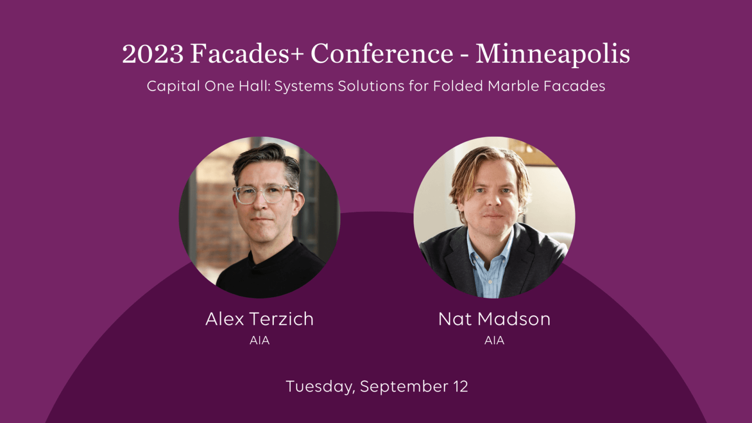 HGA’s Alex Terzich and Nat Madson are presenting Capital One Hall: Systems Solutions for Folded Marble Facades, moderated by Miller Dunwiddie’s Philip Koski at the Facades+ Conference in Minneapolis.