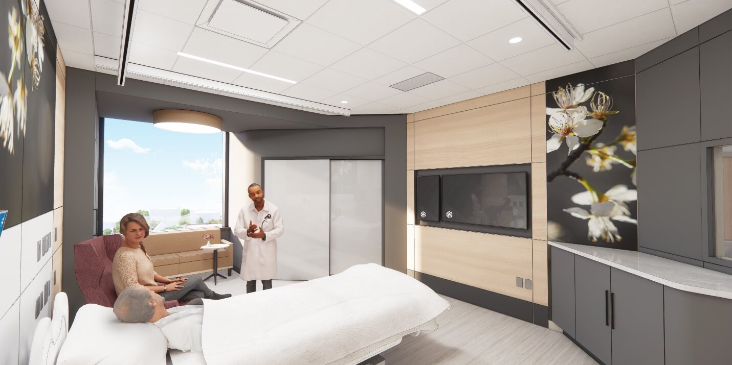 Driven by an increasing demand for private beds and procedure rooms, Abbott Northwestern Hospital began working with HGA in early 2021 to expand their campus. HGA collaborated with the Abbott Northwestern Hospital and Allina Health teams in the design of a highly integrative master plan for the addition of a surgical and critical care facility, along with phased removal and repurposing of aged facilities. A human-centered design process was utilized, translating user and staff experience research into well-defined experiential principles and design goals.