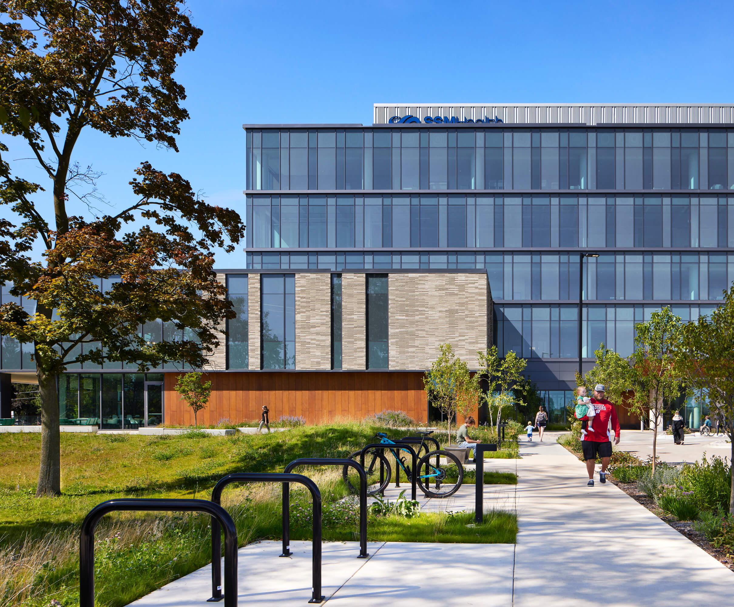 SSM Health Dean Medical Group’s South Madison Campus has been awarded WELL v2 Pilot GOLD Certification. As the largest WELL certified healthcare facility in the United States and the first WELL certified healthcare facility in Wisconsin, this achievement demonstrates SSM Health Dean Medical Group’s commitment to patient and employee health and well-being. Designed by HGA, the Specialty Services Clinic brings over 18 previously dispersed services to the healthcare system’s newest flagship location including consolidated oncology, orthopedics, therapy, and women’s services. The WELL certification process includes ten areas of focus including: air, water, nourishment, light, movement, thermal comfort, sound, materials, mind, and community. Highlights of the Specialty Services Clinic include views of surrounding nature, access to daylight in patient and staff spaces, places for respite, and material selections to ensure indoor air quality. Learn more about the WELL Building serving the community of Madison’s health and wellness needs here.