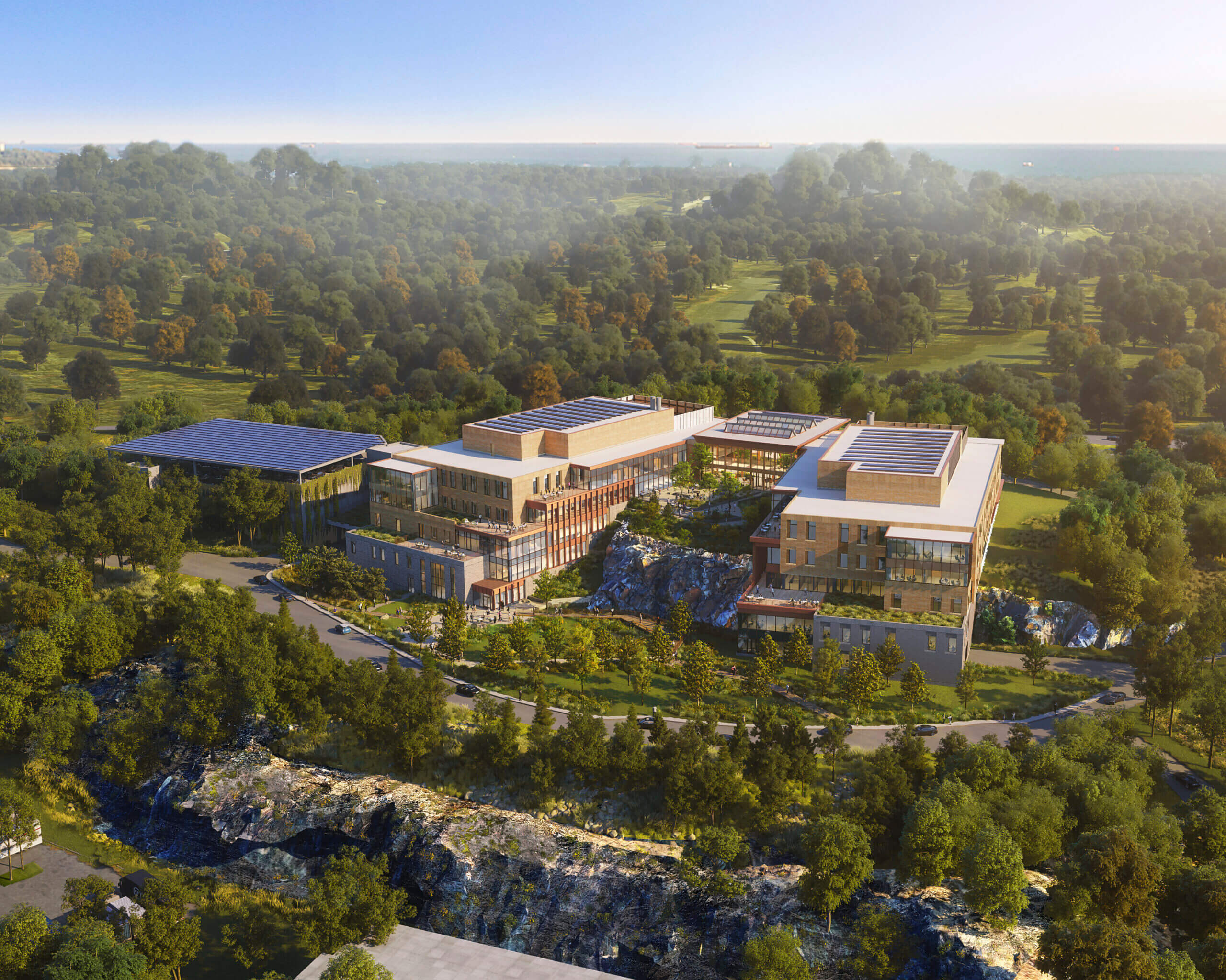 Work is advancing on the Cell Signaling Technology (CST) campus in Manchester-by-the-Sea Massachusetts. Located 45 minutes north of Boston, the 19-acre former granite quarry is being transformed into a cutting-edge, sustainable research campus for CST, a global leader in life sciences discovery technology and custom antibodies. Drilling is officially underway for the installation of an on-site geothermal well field that will provide renewable heating, cooling, and hot water for the HGA-designed net-zero ready campus. This innovative project not only advances scientific discovery but also revitalizes an environmentally degraded site, setting a new benchmark for responsible development. The start of geothermal well construction marks a major milestone in bringing this forward-thinking vision to life. Learn more about the sustainably designed “Campus of the Future” that will facilitate innovative biotechnology research, here.