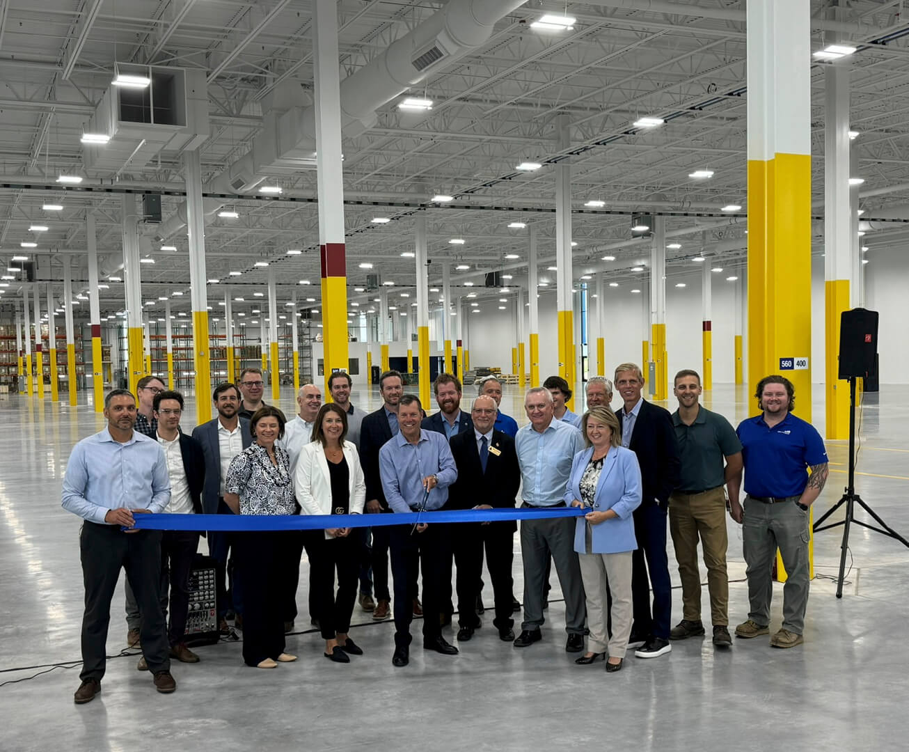 Graco staff along with HGA team and partners at ribbon cutting ceremony.