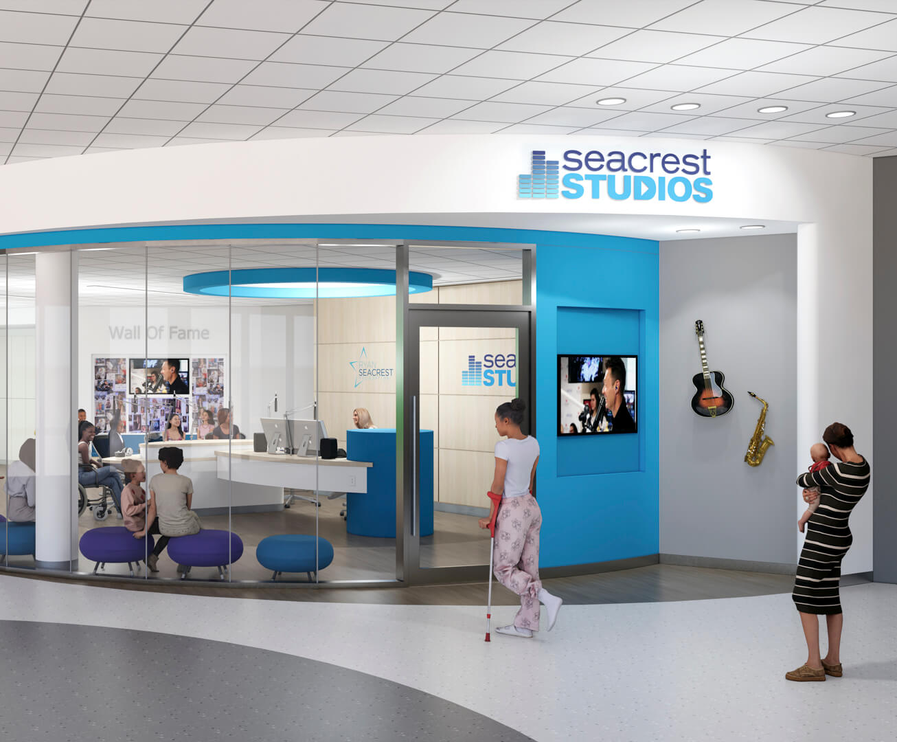 HGA collaborated with Children’s Hospital New Orleans and the Ryan Seacrest Foundation in the design of a new Seacrest Studios for pediatric patients to explore radio, television, and new media. Walker’s Imaginarium, a child enrichment center planned for the hospital’s main campus in partnership with Kids Join the Fight, will host the first Seacrest Studios in the Gulf South and the only one in Louisiana. When complete, the glass-walled studio will be on the ground level of Walker’s Imaginarium and feature a DJ desk for interviewing special guests, a motorized green screen allowing patients to create and edit videos, and a Wall of Fame photographic display of celebrity guests and patients. The studio will connect live to the hospital’s inpatient rooms and virtually to other Seacrest Studios nationwide. The studio provides a creative outlet and a positive distraction to enhance healing for children receiving care at the hospital. Read more here