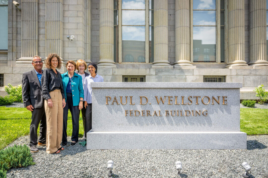 HGA team with Senator Amy Klobuchar, Rep. Ilhan Omar, and Federal Building staff at building renaming ceremony.