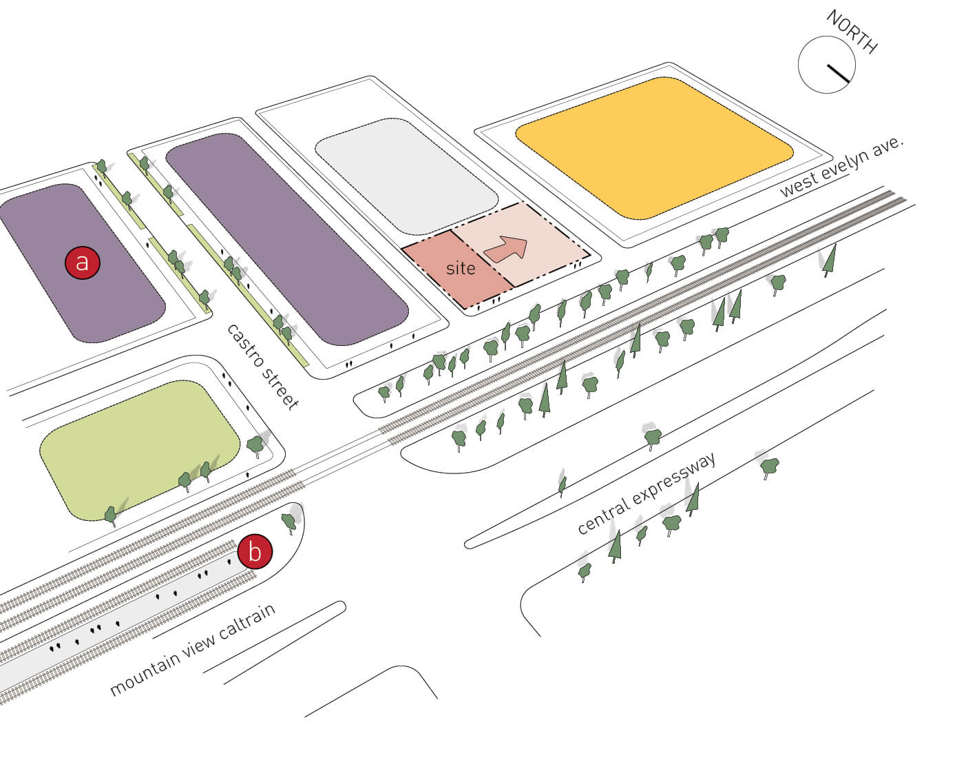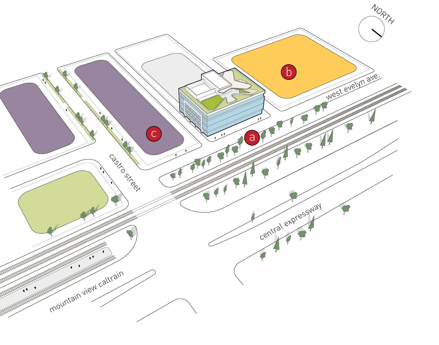 Even with its challenges, 899 West Evelyn was an ideal site for transit-oriented infill, with housing to the west, and Castro Street with its bustling restaurants and retail stores to the east—all connected by CalTrain and a small local park. Minkoff partnered with an adjacent landowner to expand the project to the west end of the block and maximize value for a new office building. The final hurdle was developing a flexible design that added to the City of Mountain View’s identity and allowed the city—dominated by mega companies outside the downtown—to attract companies of varying types and sizes to its core. Seventy five percent of 23andMe’s staff commute by train and many others bike to work, including the company’s founder. Only a few visitors take advantage the “23” minute parking meters on West Evelyn.