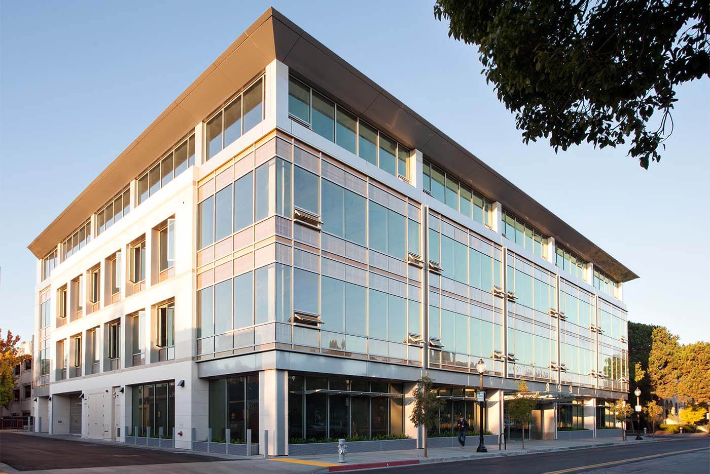 Downtown Mountain View was naturally protective of its eclectic charm and hoped the project would add to its sense of place. Minkoff envisioned a building that attracts forward-thinking companies with an identity that would reach into the future. Our team devised a system of facades that put the most contemporary design features on West Evelyn and accented the east and west facades with natural stone to graciously address the building’s neighbors and the district as a whole. The curtain wall on the north facade was engineered to reduce noise and vibration from passing trains. A cutting-edge wood louver system that wraps around the building’s edges from the main facade was key to city approvals as well as the building’s sustainability goals.
