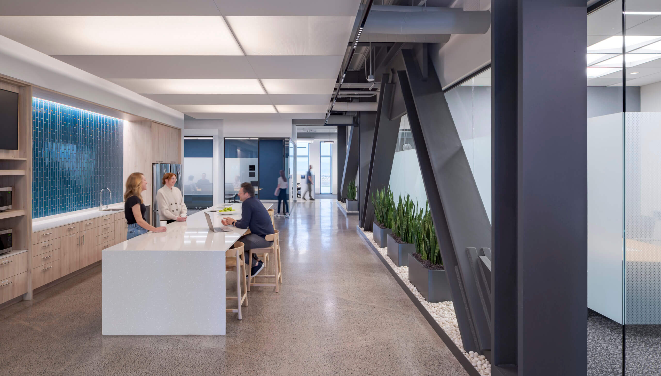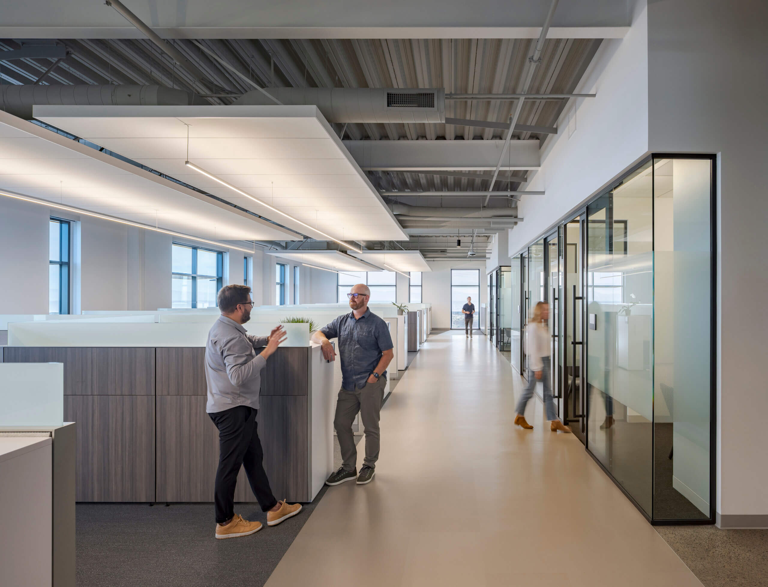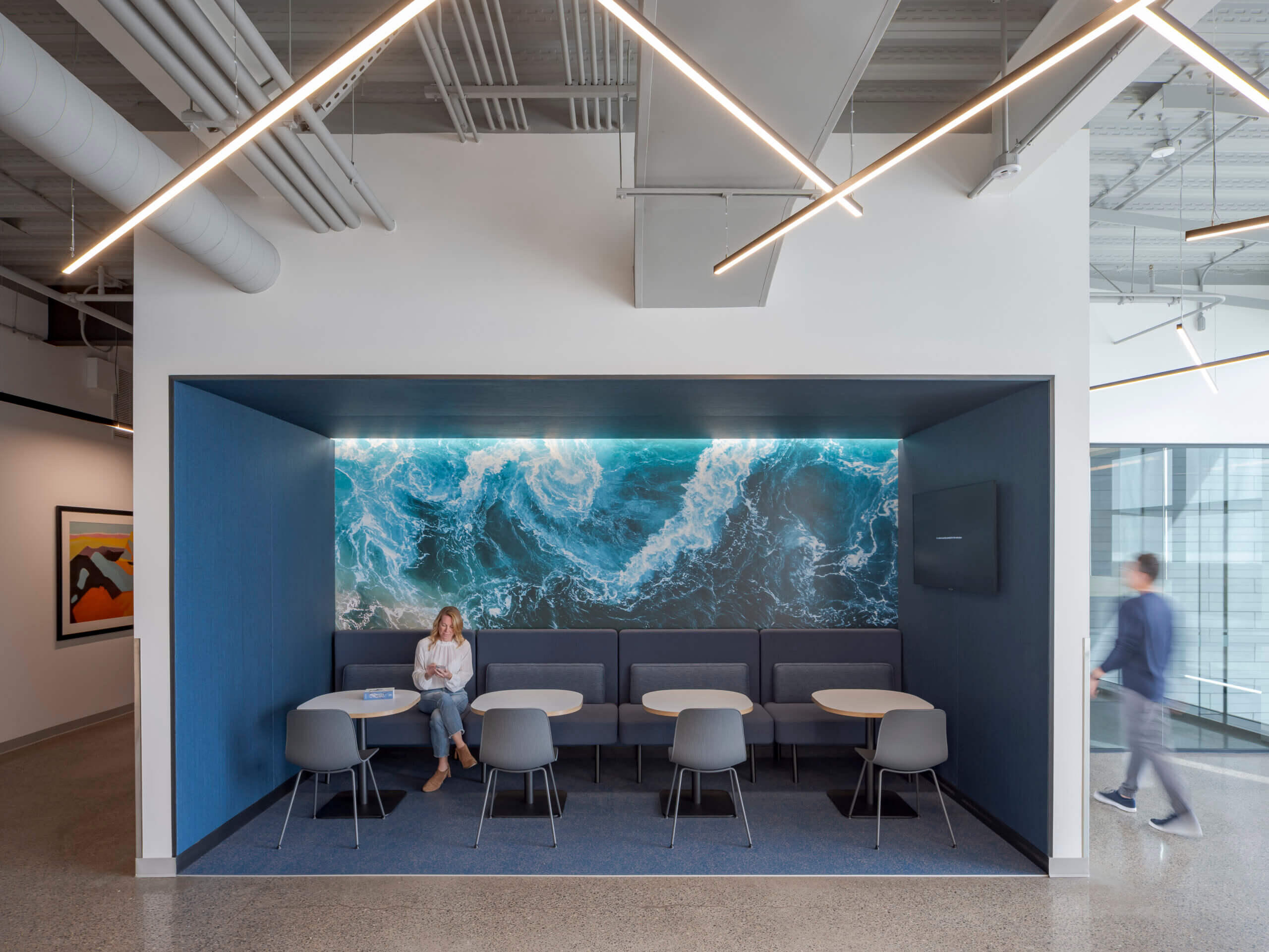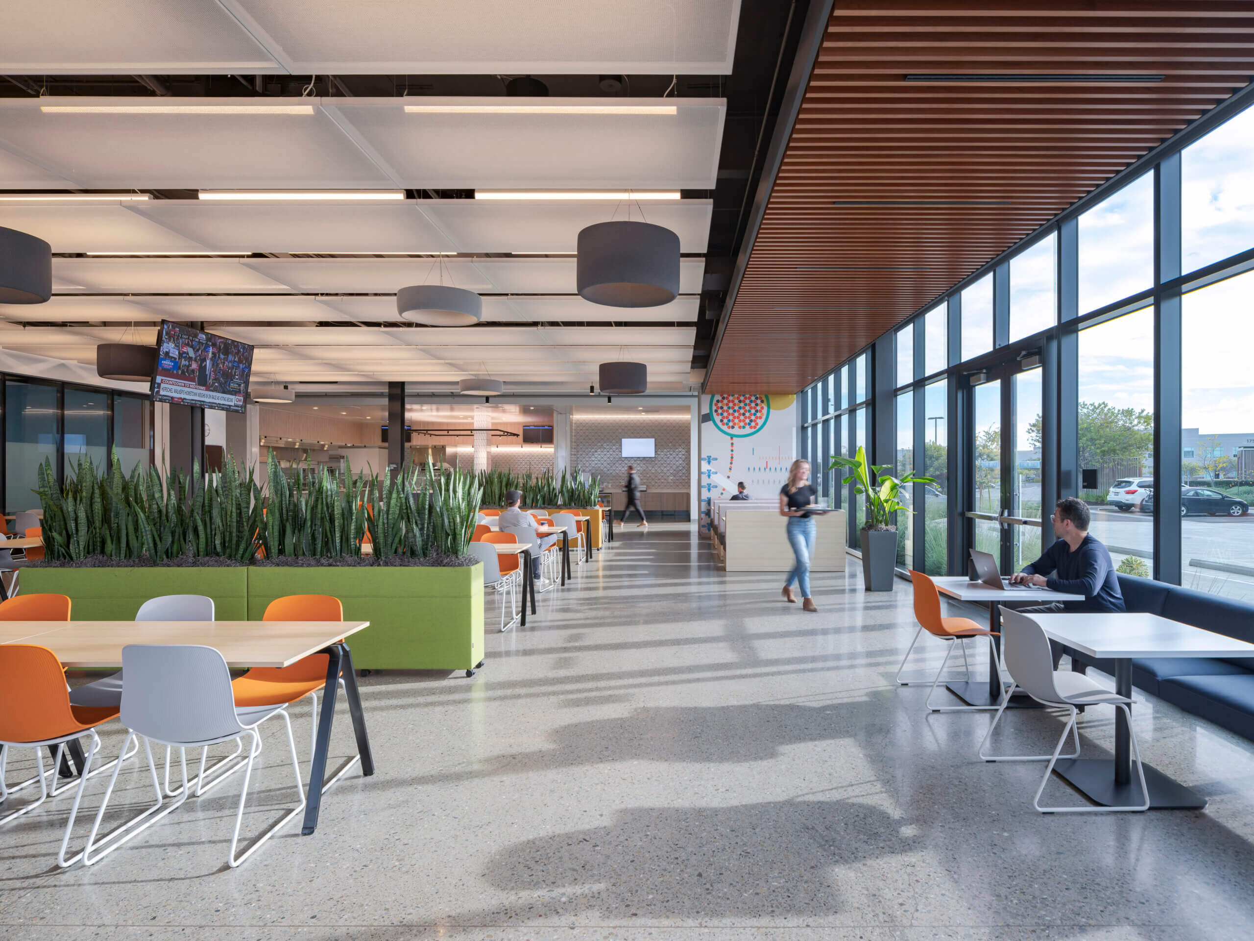 The new headquarters also features all-hands gathering areas and zoned break stations throughout the building. Completed in 2023, the building is anticipated to achieve LEED® certification and meet the WELL Building Standard.