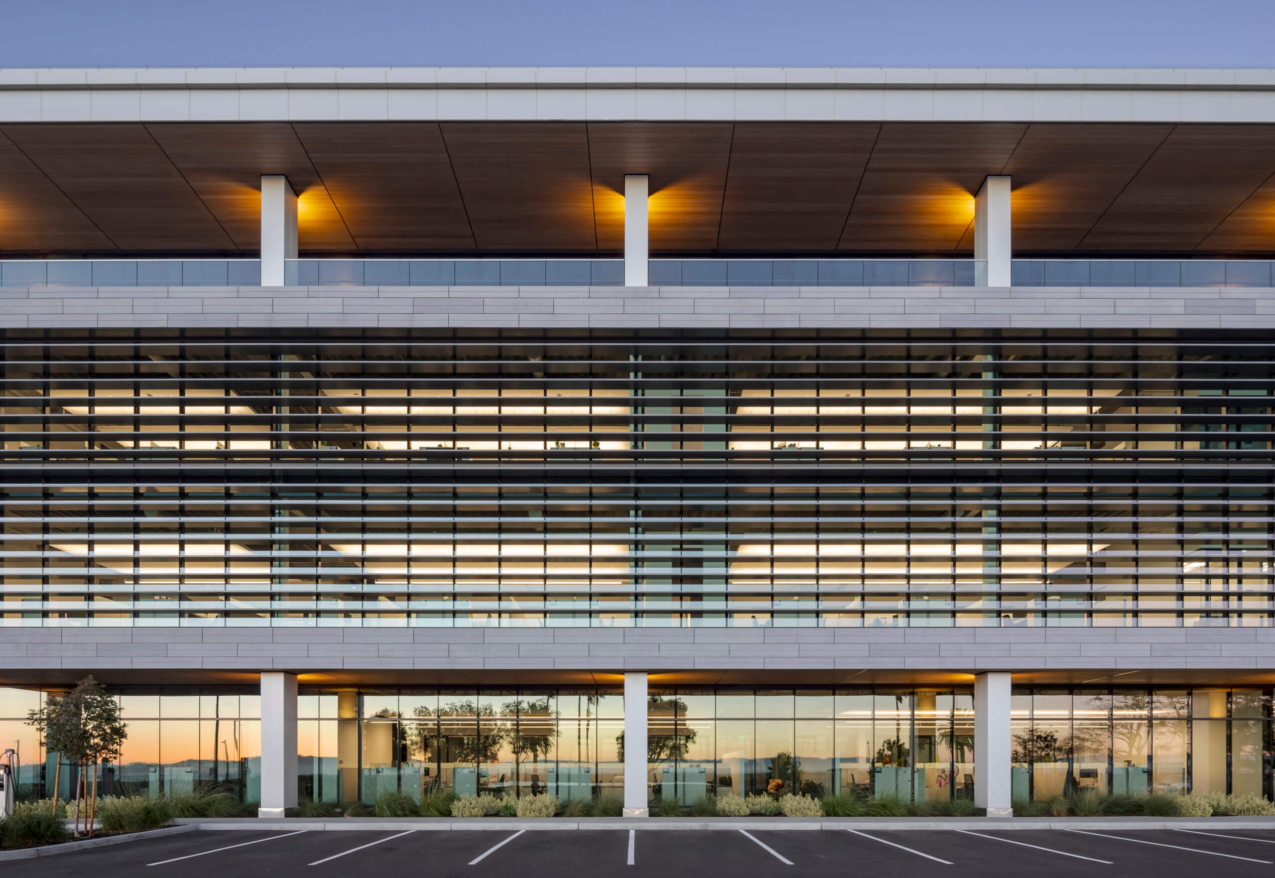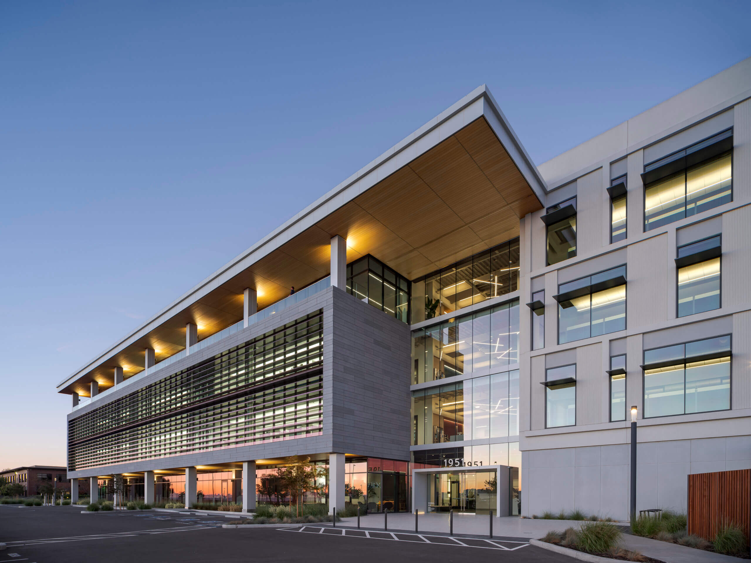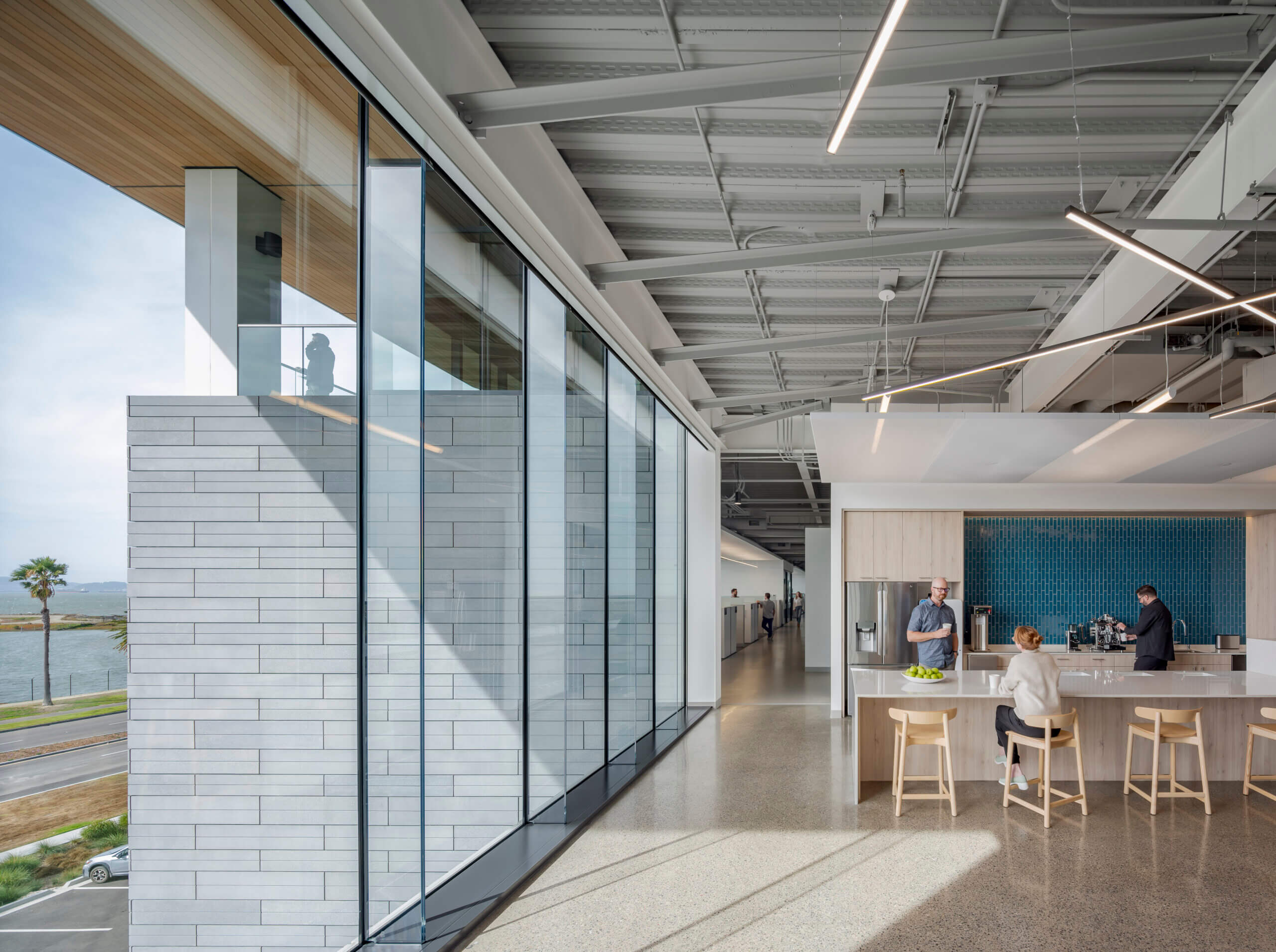 Designed with efficient glazing and shading, this all-electric building offsets carbon with the purchase of renewable energy. Taking advantage of natural light on the north and east facades highlights the site’s sweeping bay views while mitigating heat gain for the building’s west-facing main façade. The design team also worked closely with contractors, consultants, and vendors to develop a high-performance GFRC panel and window system.