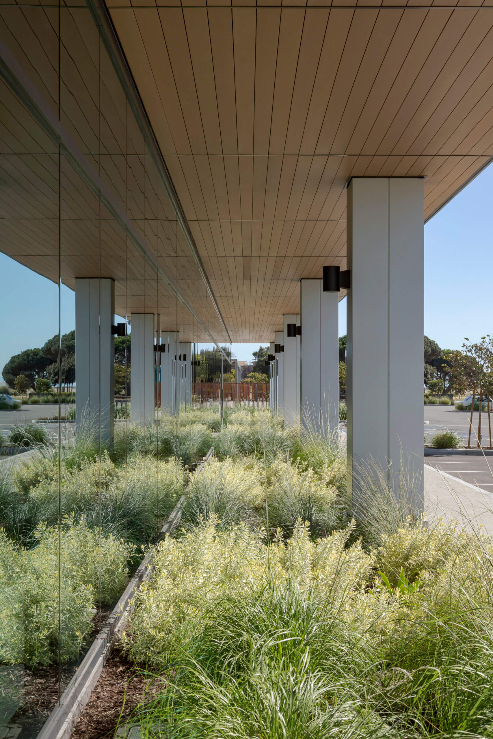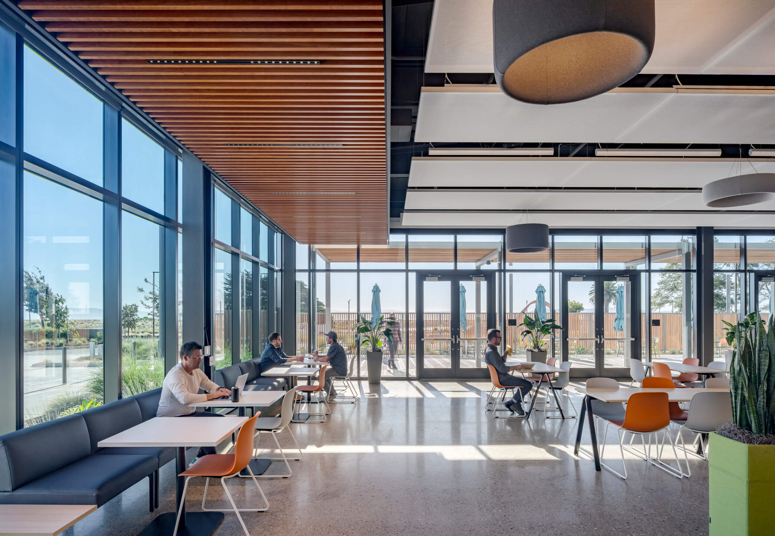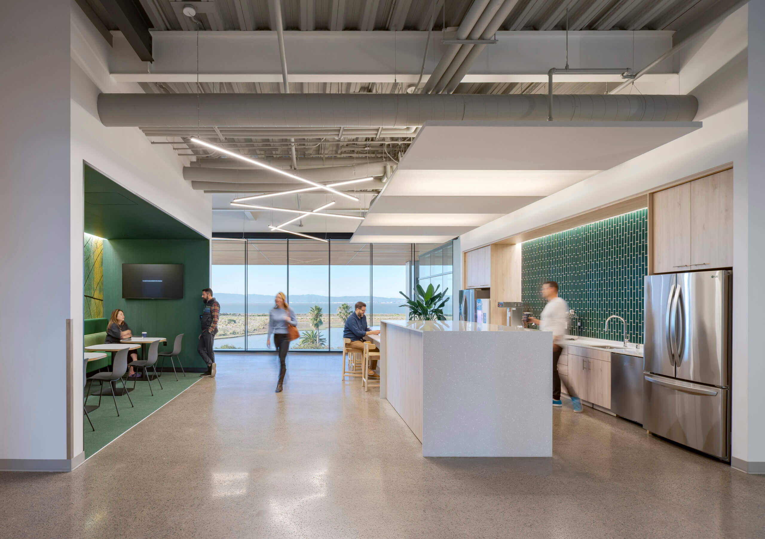 Designed with efficient glazing and shading, this all-electric building offsets carbon with the purchase of renewable energy. Taking advantage of natural light on the north and east facades highlights the site’s sweeping bay views while mitigating heat gain for the building’s west-facing main façade. The design team also worked closely with contractors, consultants, and vendors to develop a high-performance GFRC panel and window system.