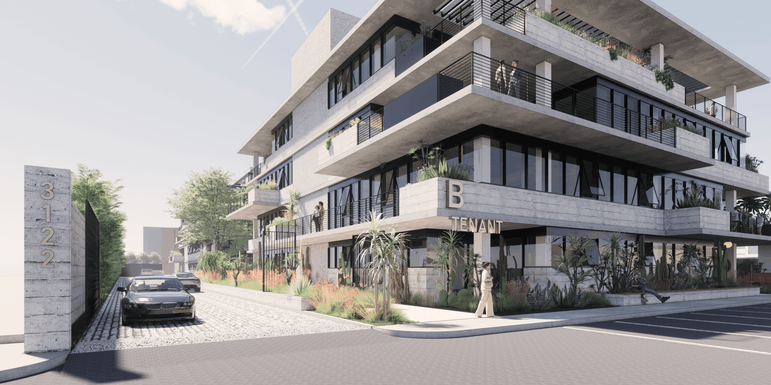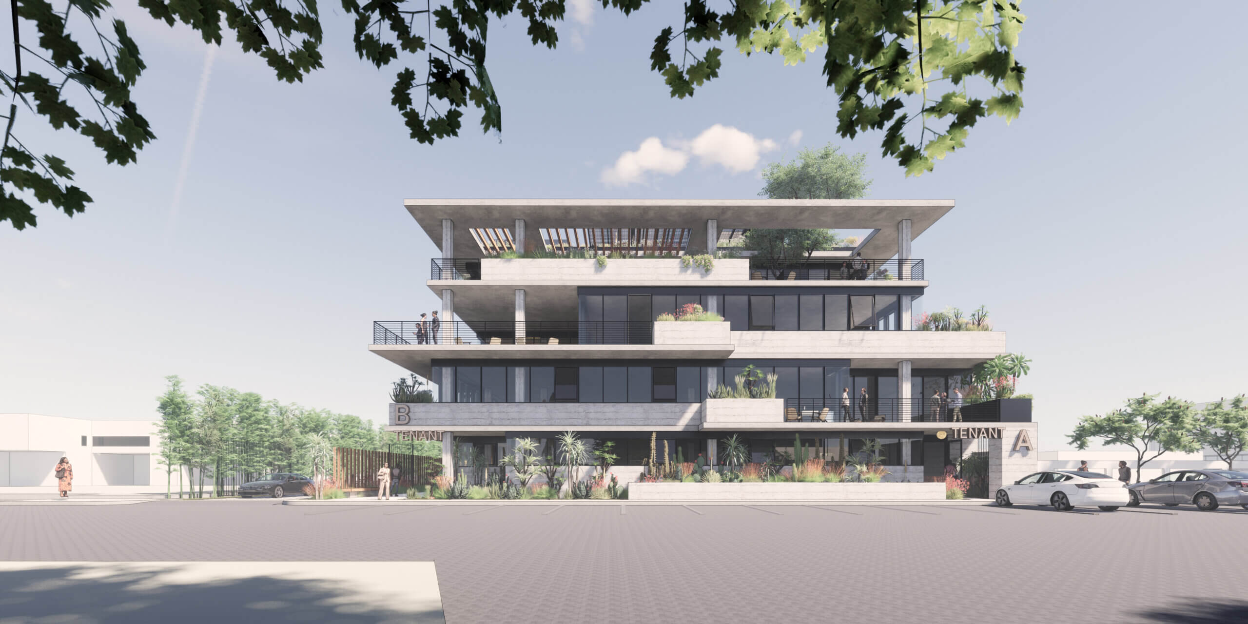 3122 Nebraska is a 4-story commercial office building with 3-levels of underground parking. The ground, second, third and fourth levels are dedicated to creative office space. The roof deck is accessible to the tenants. Parking capacity is designed to accommodate a maximum of 75,140 SF of creative offices without off-site parking. A new four-story creative office building fills the building area of the site with an area carved out in the center for an open court. The design is expressed as a concrete frame with various areas of enclosure and outdoor space on each floor, topped by a habitable roof deck. The design enables natural light to penetrate with the use of the court, outdoor terraces, open to sky courts, atriums and clerestory windows. The project features materials and forms that reflect the industrial past while modernizing this transitioning area of the city.