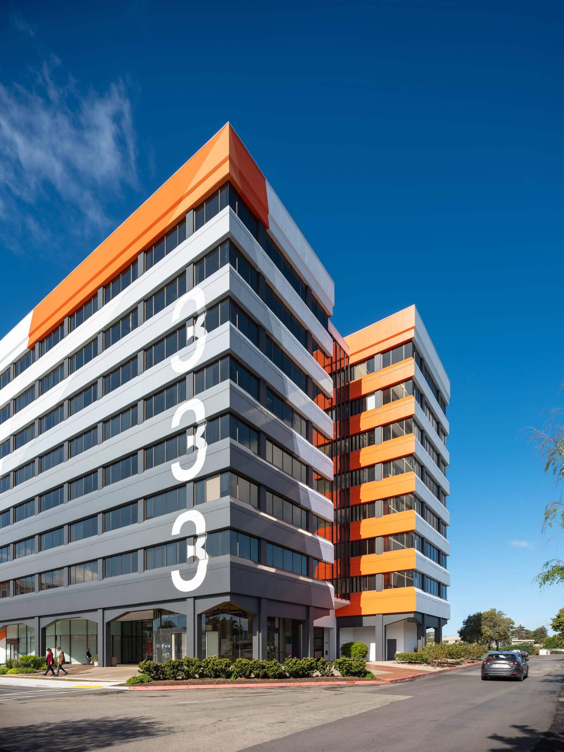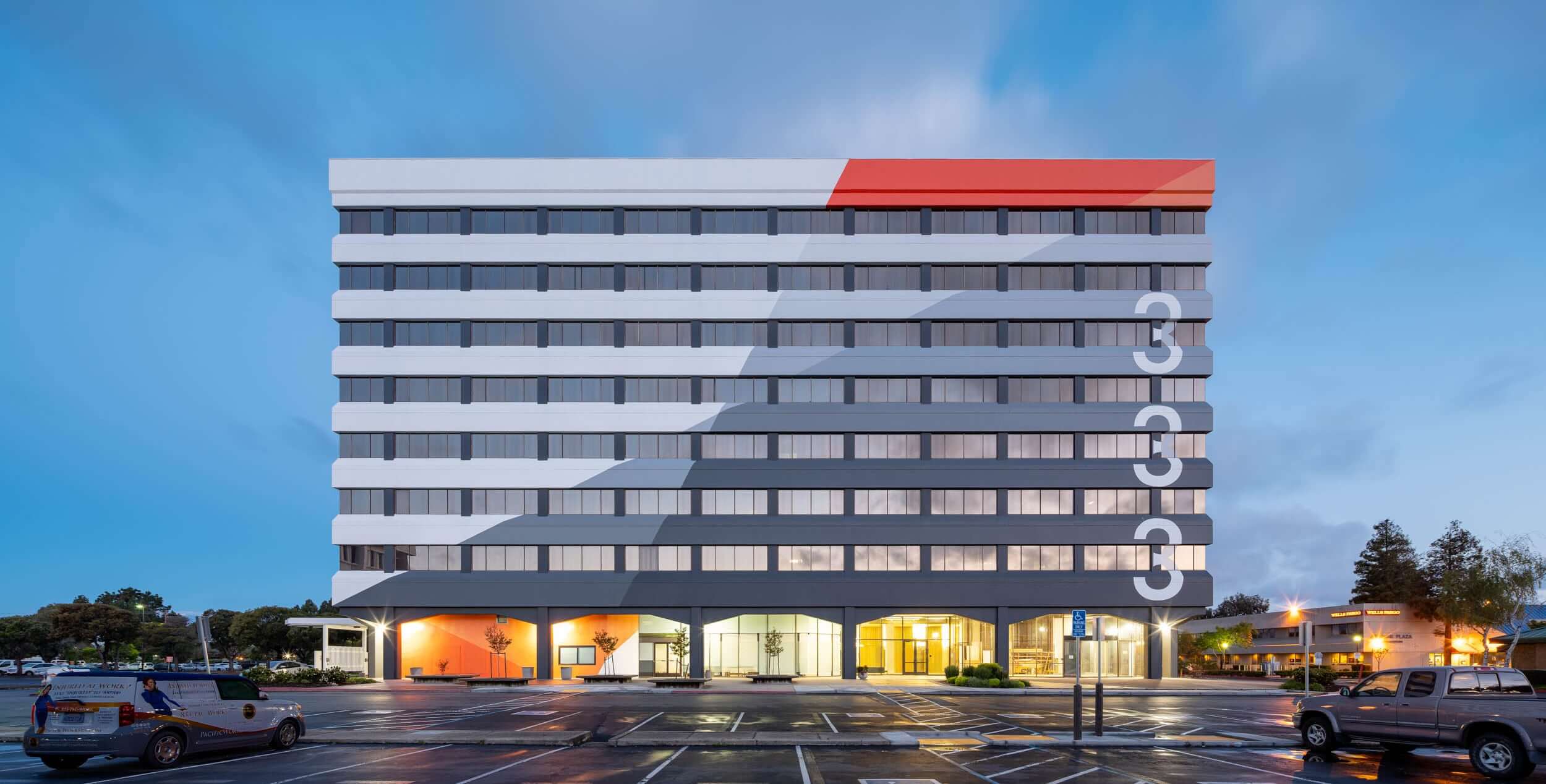 Once indistinguishable from the humdrum office towers en route to Oakland Airport, 333 and 303 Hegenberger are shaking up the airport sub-market with a novel paint scheme and class-A interior finishes.