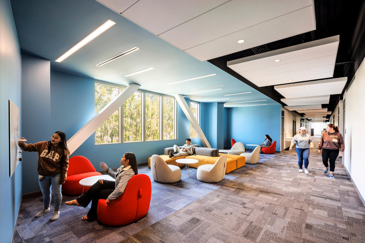 The architectural language draws on the aspects of the master plan and the original vocabulary that was created when the campus was first established in 1970, by the Architect and Modernist, A. Quincy Jones. The new building houses general university and business school classrooms, faculty/admin offices, and a café as well as a university event center. Classrooms and computer labs of varying sizes from 25 to 120 seats are designed as active learning environments. Faculty offices and meeting rooms encourage student/faculty interaction and collaboration. Breakout spaces and open collaboration areas enhance the continuous learning environment.