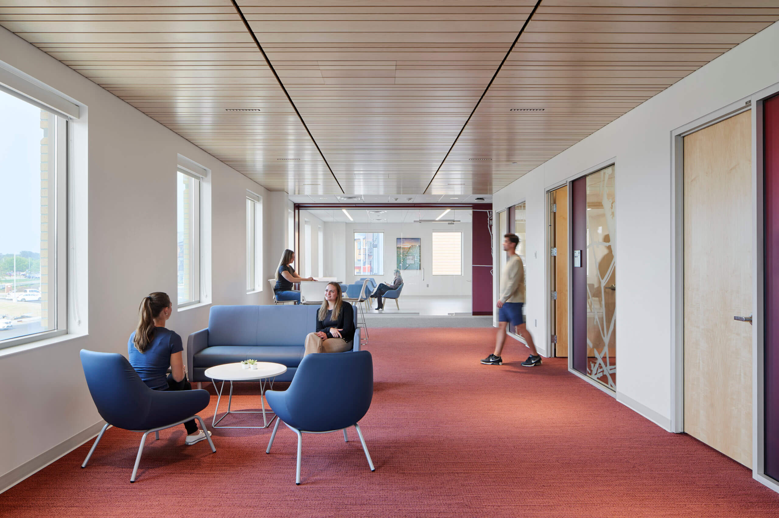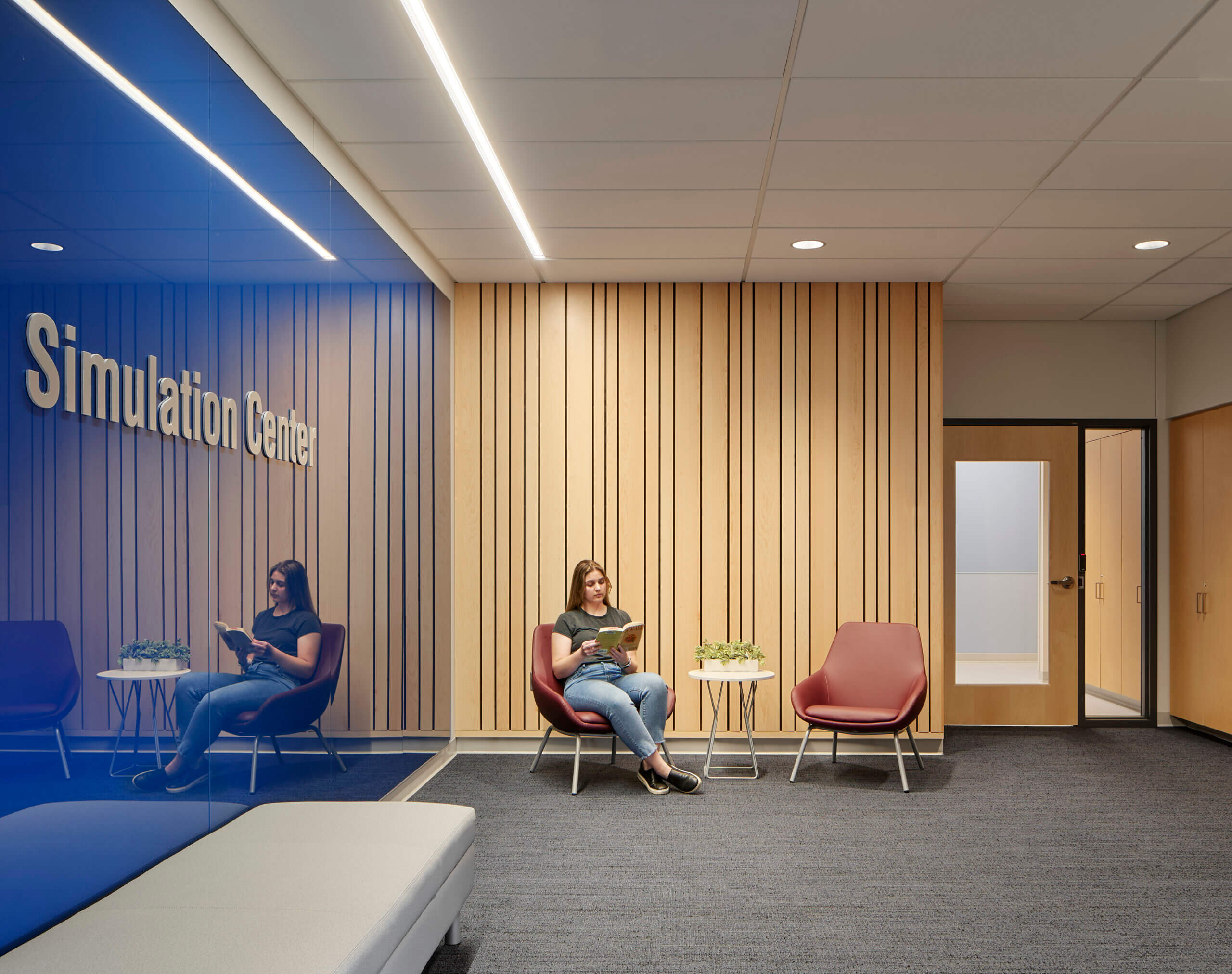 HGA’s approach began with extensive student engagement, incorporating feedback from existing medical students to understand their needs. The result is a design that prioritizes flexibility, access to daylight, and a variety of learning spaces. The centerpiece of the facility is a cutting-edge Simulation Lab, configurable for various medical scenarios and equipped with advanced technology. The design concept reflects the unique Central Minnesota environment, taking students on a visual journey from lake to prairie to sky as they move through the building’s three floors.