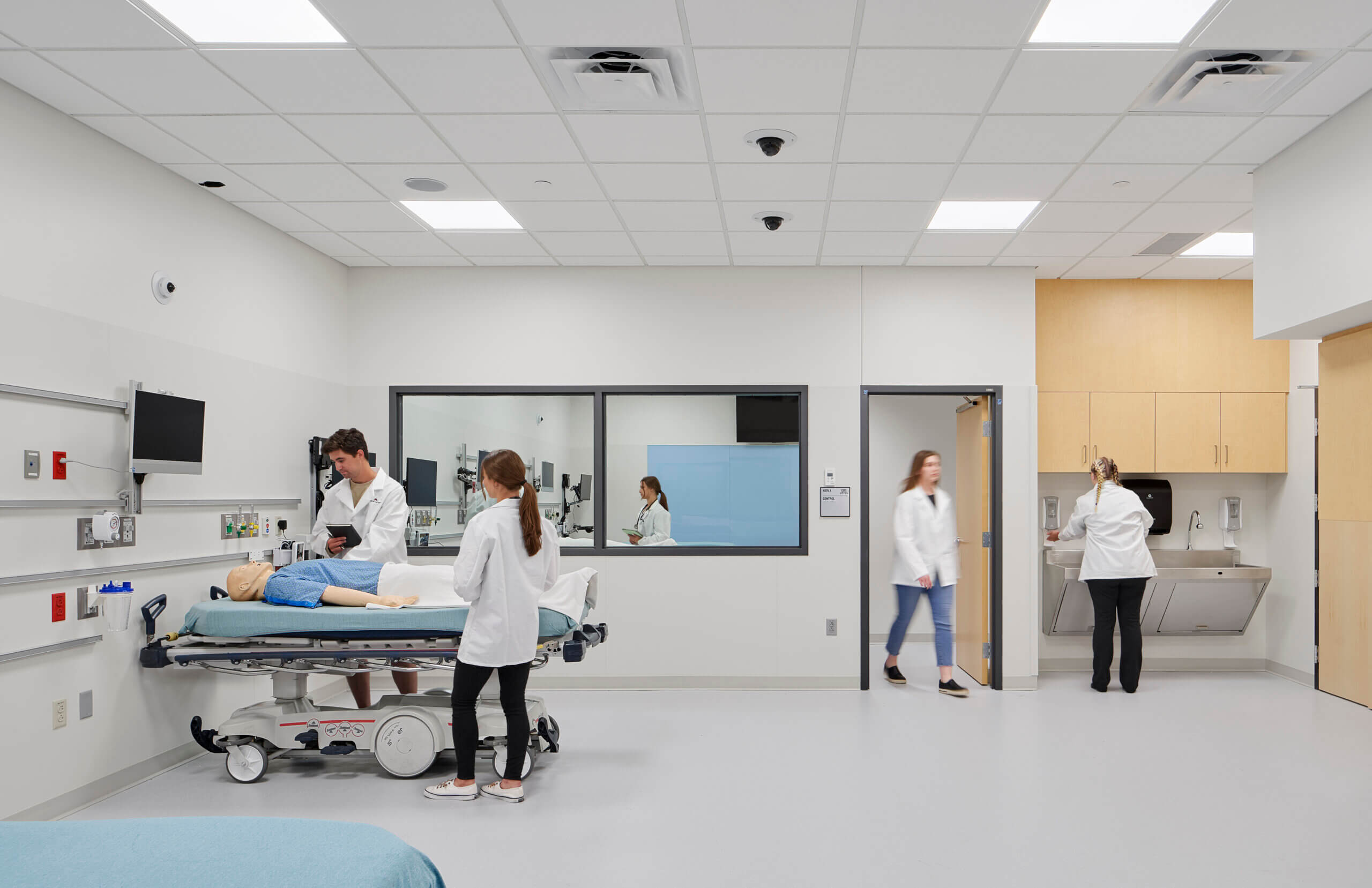 Sustainability and equity were key drivers in the design process. The project adheres to Minnesota B3 requirements and incorporates AIA Framework for Design Excellence principles, focusing on creating healthier environments with improved indoor air quality, optimal lighting, and reduced energy and carbon footprints. Recognizing the growing diversity in Central Minnesota, the design includes appropriate washing and prayer areas to support an equitable environment for all students and patients, including the region’s Somali American population. By bringing medical education to where the patients are, this project sets a new standard for rural healthcare training, aiming to create a pipeline of physicians dedicated to serving their local communities.