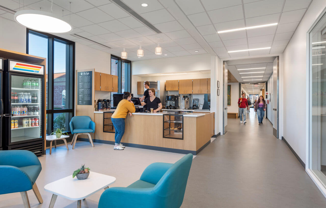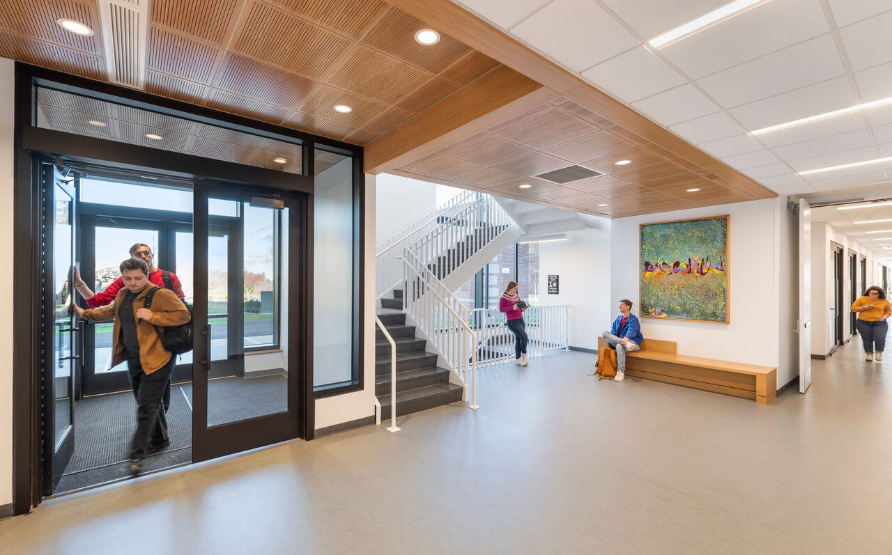 HGA worked closely with the College and construction team to navigate the challenges of an uncertain period marked by rapidly rising construction costs. Together, we ensured that key elements were prioritized within the budget, enabling informed, strategic decisions throughout the process. From the outset, sustainability was a primary goal, with strategies tailored to be both easily implemented and maintained by the facilities team. HGA led a sustainability charrette with the full design team to explore ways to advance these efforts. Key highlights include the building being fully electrified and featuring photovoltaic panels to support renewable energy goals.