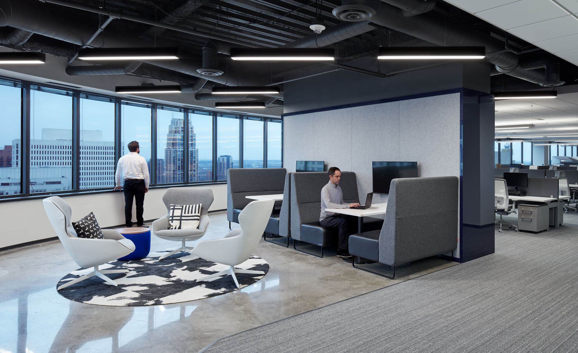 When Collective Measures needed an office expansion including new reception and café spaces, HGA started by looking at the big picture. After identifying future goals and growth projections we created a long range space plan that reaches beyond the extent of the existing suite to incorporate the entire 20th Level.