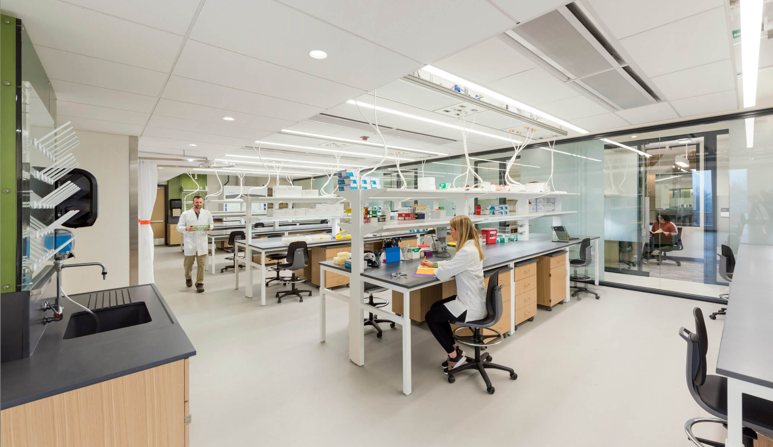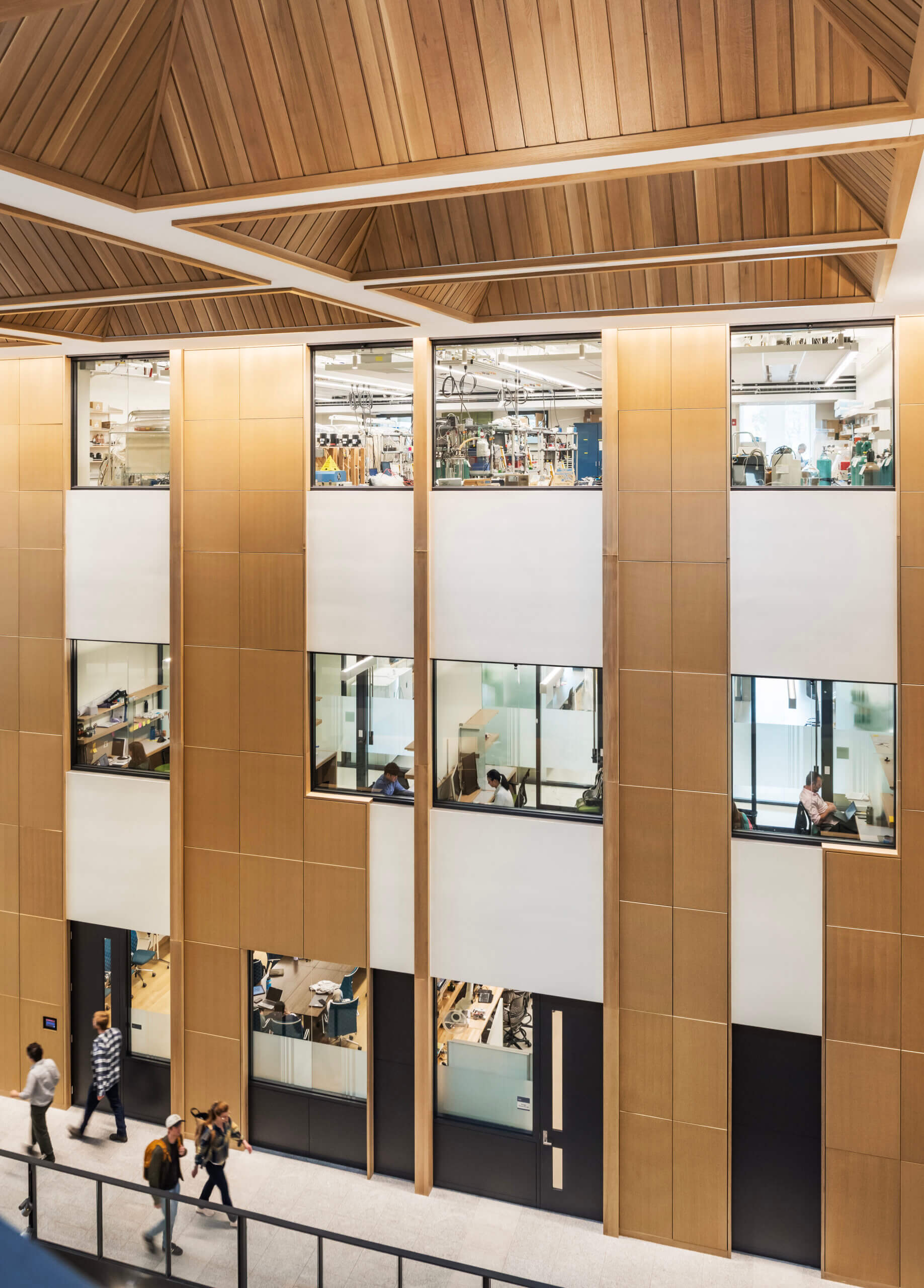 The design of the building encourages cross-discipline interaction and collaboration to promote the synergies between fields that spark discovery and solutions to global challenges. Open floorplans and modular features within the laboratory spaces create an interior experience of openness and transparency. Glass walls makes the research visible to fellow researchers, students, and visitors.