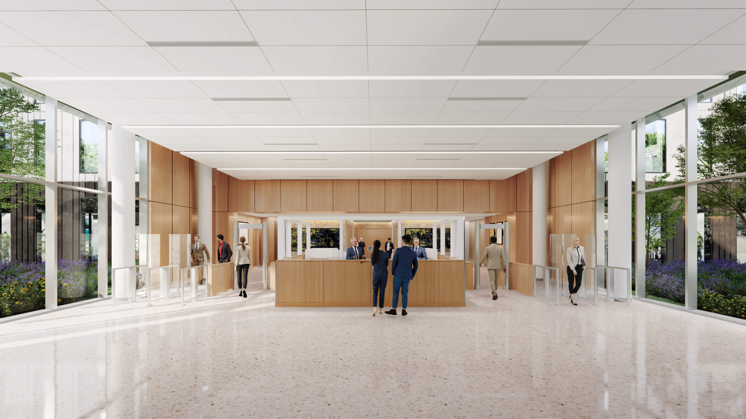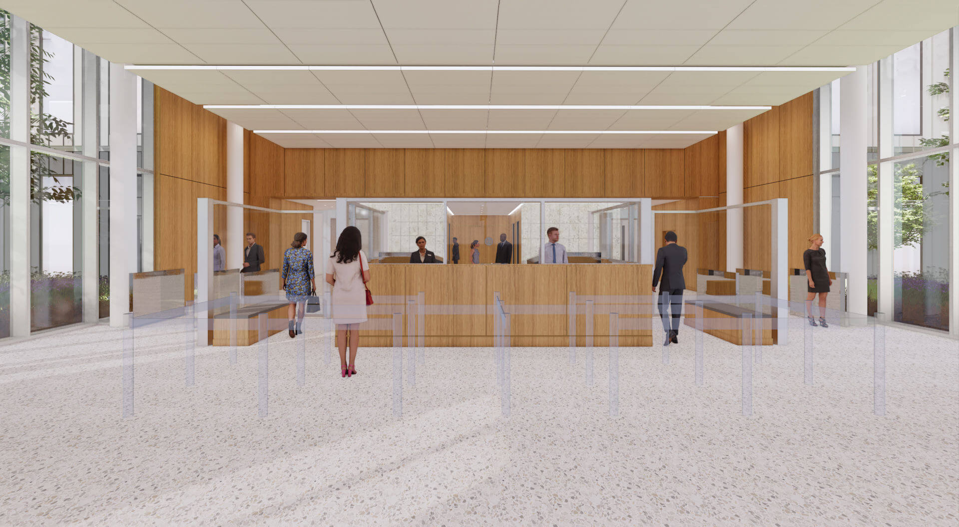 Visitors are welcomed into the secured first floor formal lobby with access to elevators and the probate wing. The first floor also holds the jury assembly area with a large outdoor courtyard for jurors awaiting calls with vending, dining, coffee, separate restrooms, and staff who welcome and host the jurors. The U.S. Marshals Service offices are located on the second floor along with the grand jury hearing room. Judge parking is provided in the building, and an adjacent parking structure provides parking to staff and the public.