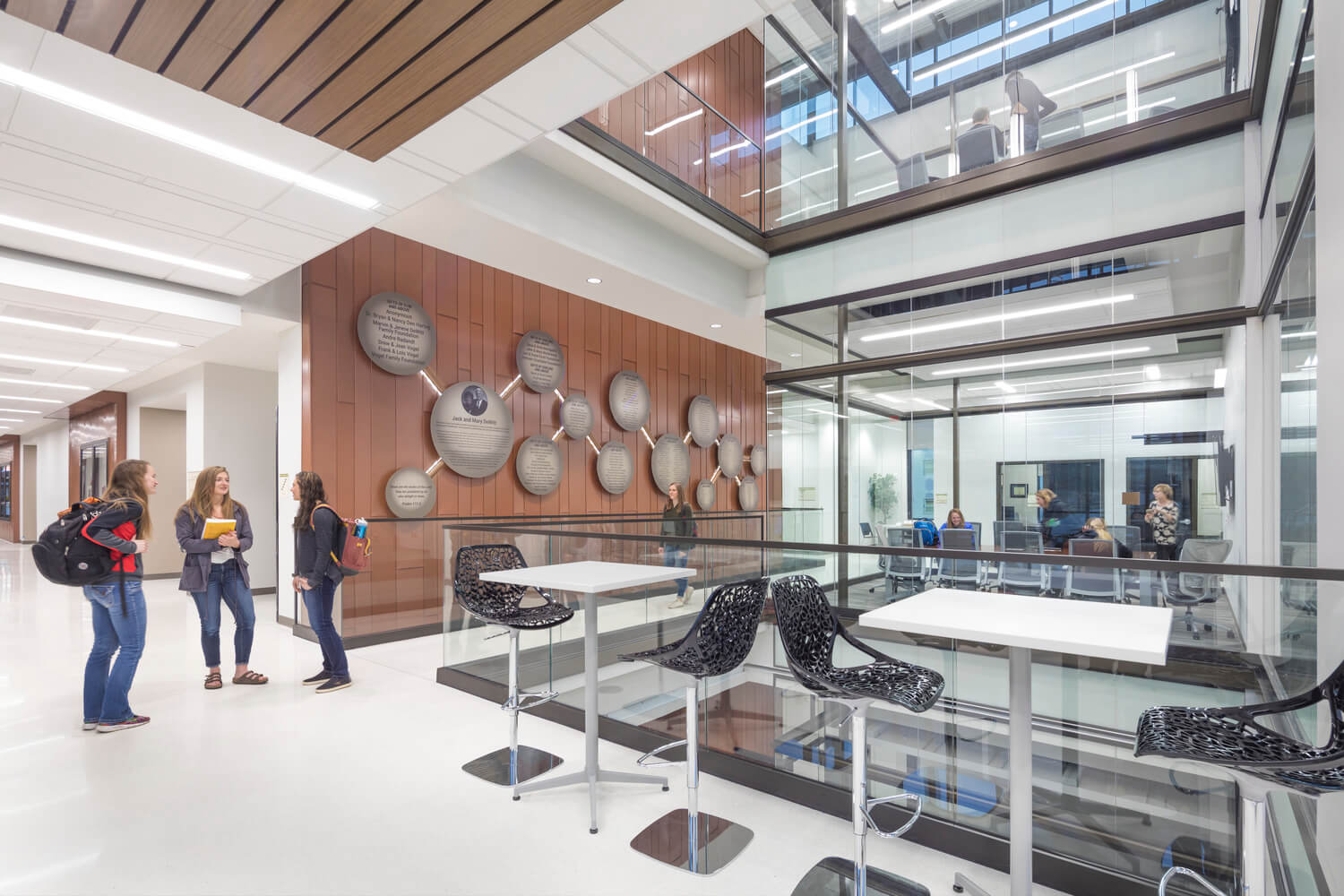 Two zones of lab modules, separated by a wide corridor for collaboration, create a center for science education and interactive learning. An office zone to the north allow faculty to be steps away from both teaching and research labs.