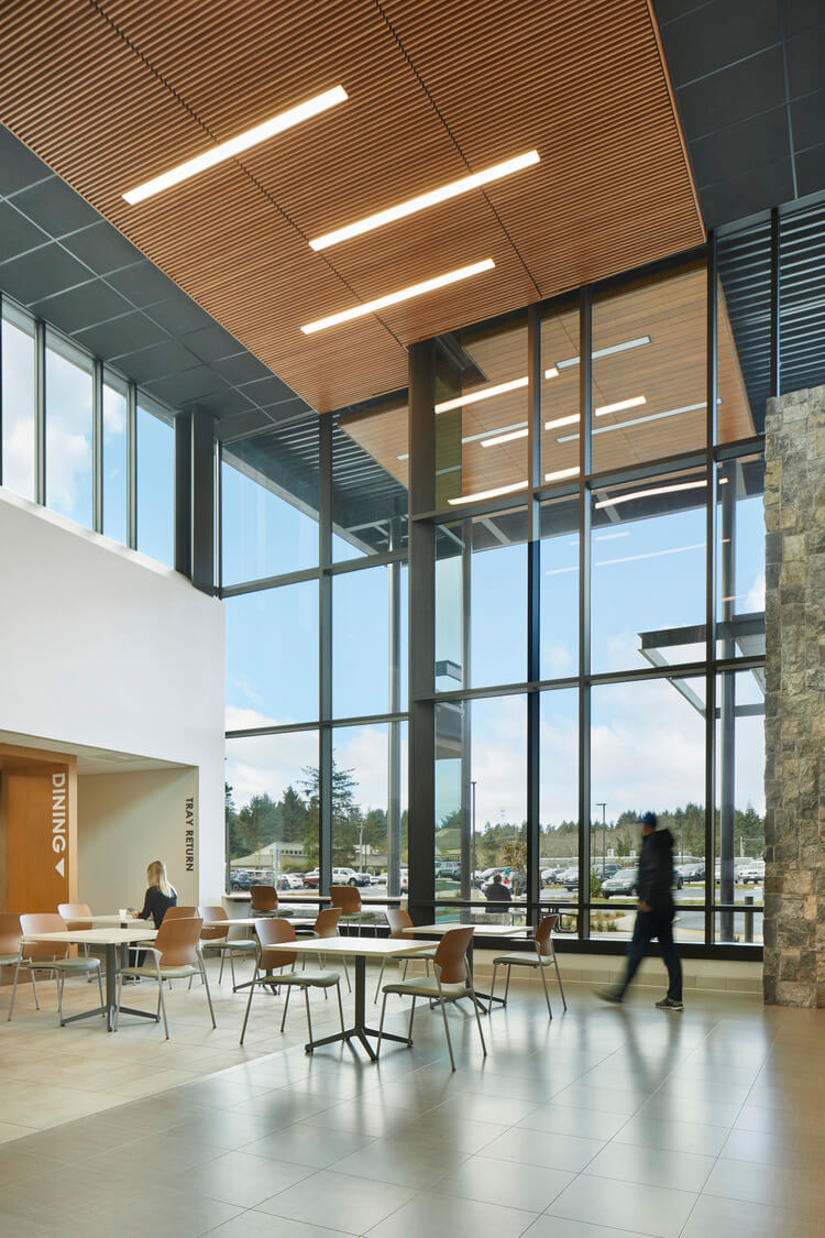 Located in a summer tourist destination in coastal Oregon, Samaritan North Lincoln Hospital (SNLH) is flexibly designed to accommodate fluctuating patient volumes as the rural community’s population quadruples during the summer, allowing clinical spaces to serve multiple functions when needed.