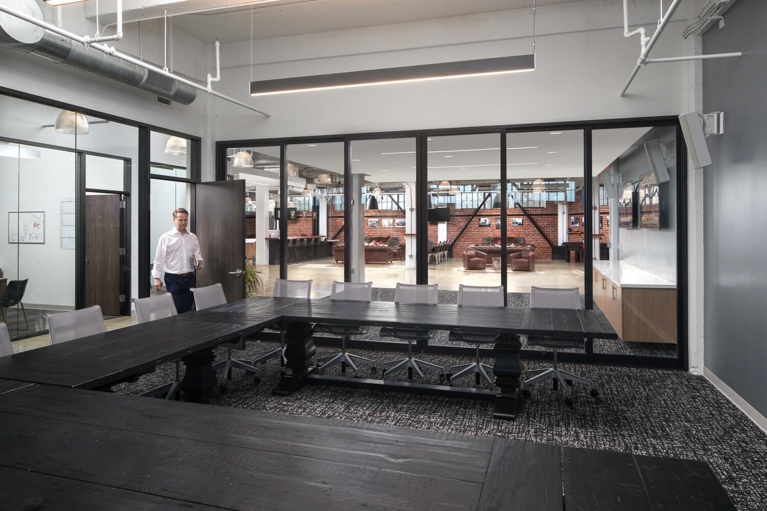 Designed to support the training of health care professionals, the high-tech Sequoia Surgical office adheres to The Cannery urban campus of shared design aesthetic marrying its historic character with the more polished design elements fitting of a space dedicated to events, seminars and showcasing advanced medical equipment. HGA’s transformation of the 12,000-square-foot office includes an auditorium, training room, and entertainment venue for visiting health care providers that celebrates Sacramento’s history and “farm-to-fork” cuisine, featuring a luxurious lounge area, pool table and bar in addition to a kitchen space for local chefs to come and serve their best recipes.