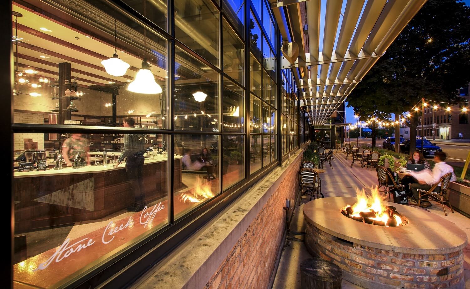88Nine Radio Milwaukee‘s new facility is a transformative presence in the Walker’s Point neighborhood, bringing to life a long vacant building. The central feature of the new building is a venue entirely unique to Milwaukee. The Performance Space accommodates over 100 people for live performances and events. The adjacent community room is a hub for station events and a gathering place for the community. Stone Creek Coffee’s café and restaurant is connected to both the Performance Space and station partner by large glass garage doors making this space is flexible and welcoming. Large windows extend the experience to the sidewalk patio featuring outdoor seating and a fire pit. Here you can order local coffee and relax looking out to Pittsburgh Street or to the studio through the large glass expanses that make up the building’s façade.