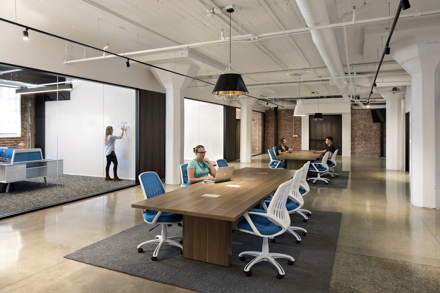 Bay-area tech company recently relocated to Sacramento from the heart of San Francisco. The Cannery building has the industrial urban feel they were looking for. The new space has white ceilings and polished concrete floors. The high-level sophisticated finishing with branding colors will feel right at home in the tech world.