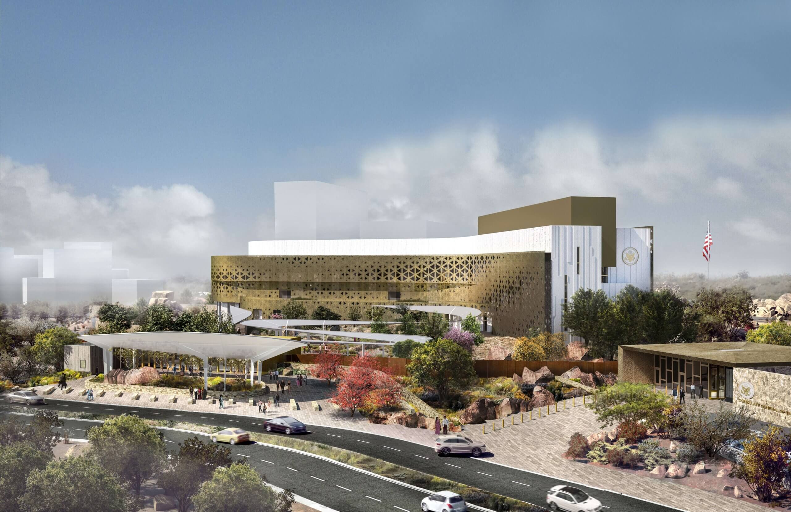 We have been working with design partner, RKA (formerly richard+bauer), on a number of new consulate compounds for U.S. Department of State Overseas Building Operation (OBO) under an existing IDIQ contract. HGA acts as the Associate Architect and RKA is the lead designer on all projects. This U.S. Consulate is being built on a site at the western edge of the Hyderabad financial and high-tech districts. This zone has been created by the government to promote the growth of the technology sector.