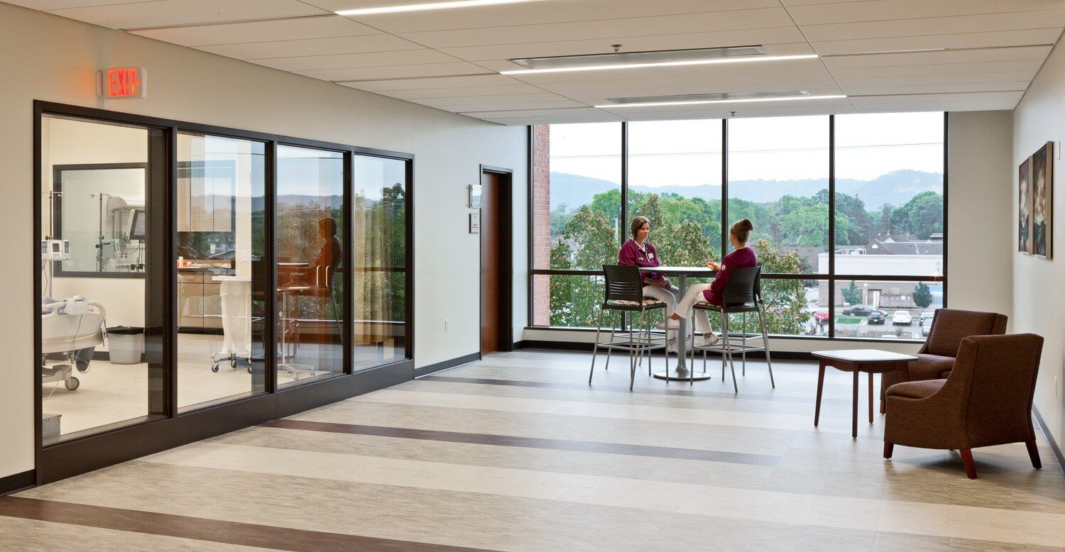 The LEED® Silver, 68,000 SF building includes classrooms, laboratories, faculty offices, common spaces for the School of Nursing, Public Health, Dietetics Department, Nutrition Department, and a Nursing Simulation Center. The state-of-the-art Nursing Simulation Center on the third floor consists of four labs for critical care simulation, med-surgery simulation, maternity simulation, and pediatrics simulation.
