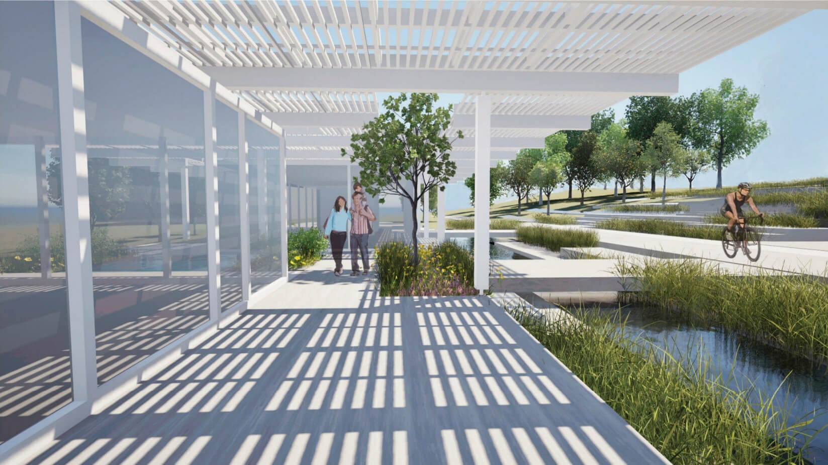 The first is “Space for Community” that asked students to design a pavilion adjacent to the Hank Aaron State Trail. A lot of people bike through the campus without stopping. The pavilion would be an invitation for trail goers to pause and enjoy the landscape, to reflect on its history, and remember those who have served our country.