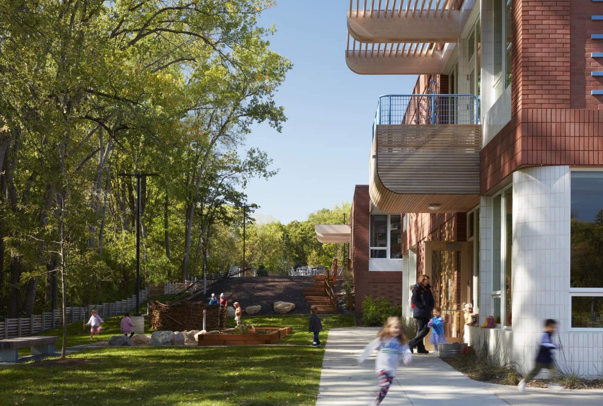 Absolutely. Both projects are about learning, socializing, and making connections. At Blake, the school took cues from a Reggioinspired learning model that encourages children’s discoveries through collaboration with peers and teachers—using a variety of tools and techniques. Emphasis is given to relationships. The school is supposed to be a model of society—a model of the city. As with a city, the learning environment can be complex and overlapping and rich in spatial relationships. We found this to be a powerful architectural idea.