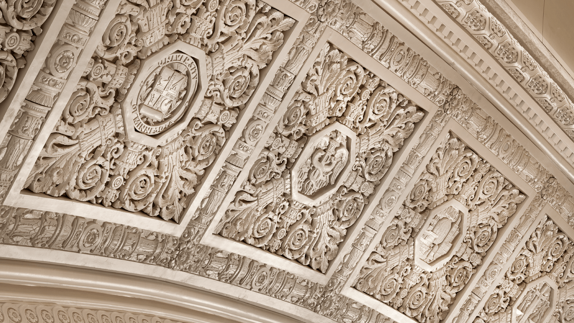 - Medallions in the proscenium were removed, restored, and hung in the new lobby, where they are much more visible.