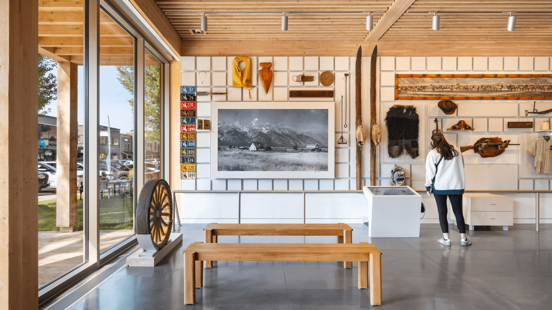 G&A (Gallagher & Associates) led the exhibition design throughout the Jackson Hole History Museum campus with museum staff. Exhibits within the new museum were designed in support of HJH’s mission to collect the stories, objects and images that connect people to the history of Jackson Hole and bring this history to life through the preservation, curation and interpretation of that collection. Inside, layered stories are told through evocative and lasting experiences, presented in a state-of-the-art format on par with some of the nation’s top museums that seamlessly integrate important cultural ties and storylines throughout the fabric of the design. Initial concept sessions that focused on the messaging of exhibits were extremely collaborative and engaged external stakeholders with the intention of elevating the Native American voice alongside the Western.