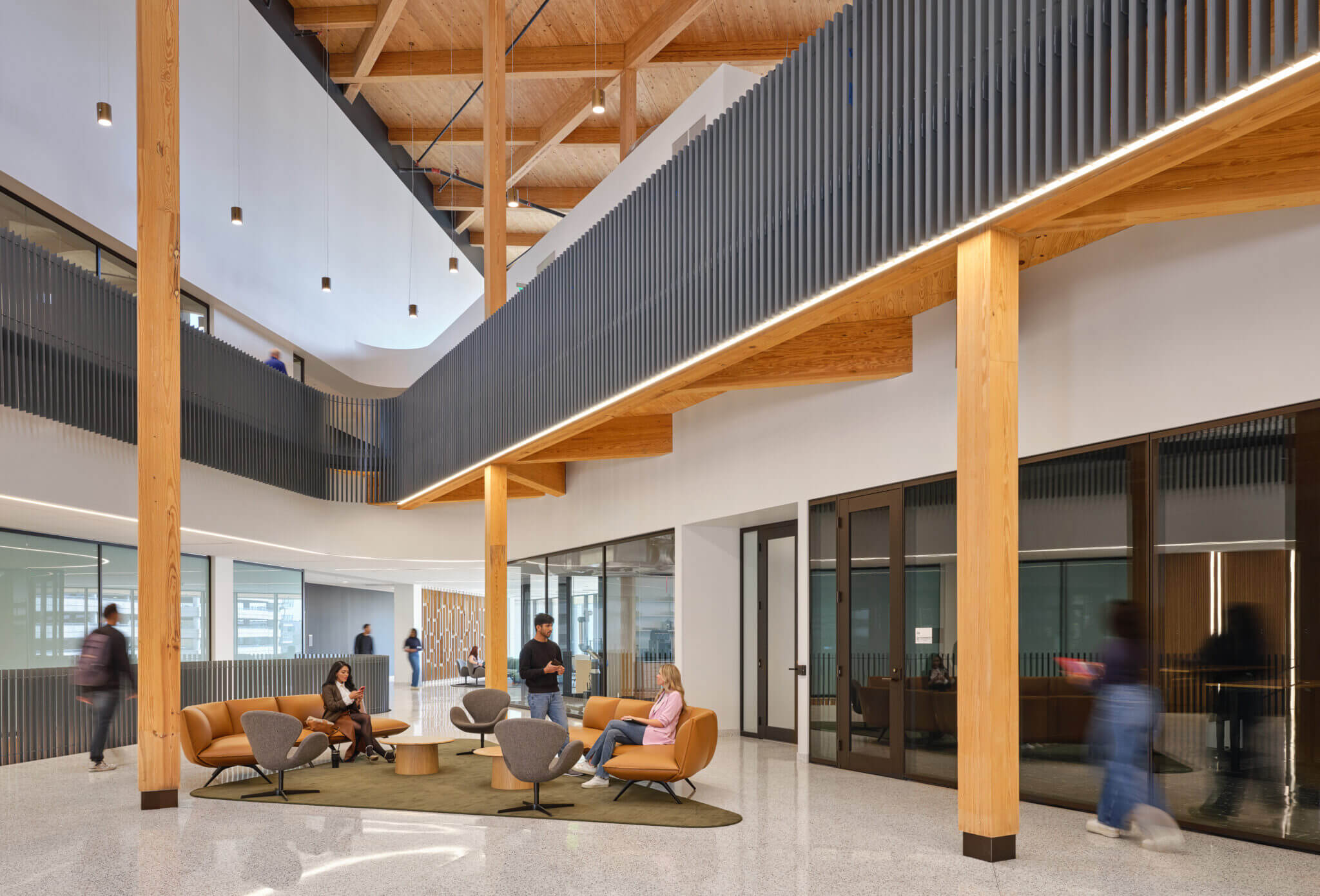 The design team partnered with the Institute to deliver a design that combines advanced laboratories and research equipment. Expansive collaborative spaces across all three floors, sparks interdisciplinary collaboration to address urgent challenges like human health protection, addressing the food-energy-water nexus, and exploring the universe at various scales. The public atrium encourages spontaneous interaction while laboratory spaces offer flexibility to adapt as research evolves.
